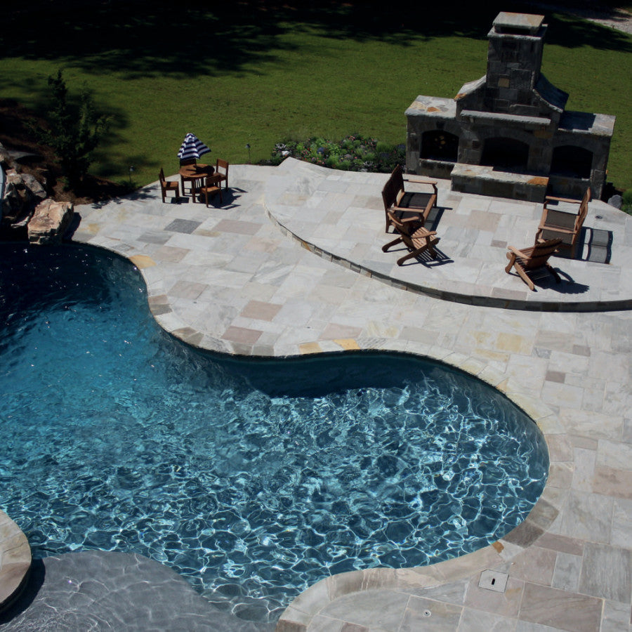 Natural Paving's Classicstone comes in Golden Fossil, Harvest, Lakeland, Promenade and Steel Blue. Premiastone comes in Ivory and Platinum options. Need to see other options? Check out our other pool copings in our gallery here.