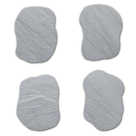 Irregular pieces vary in size and shape to create a natural, random installation pattern.