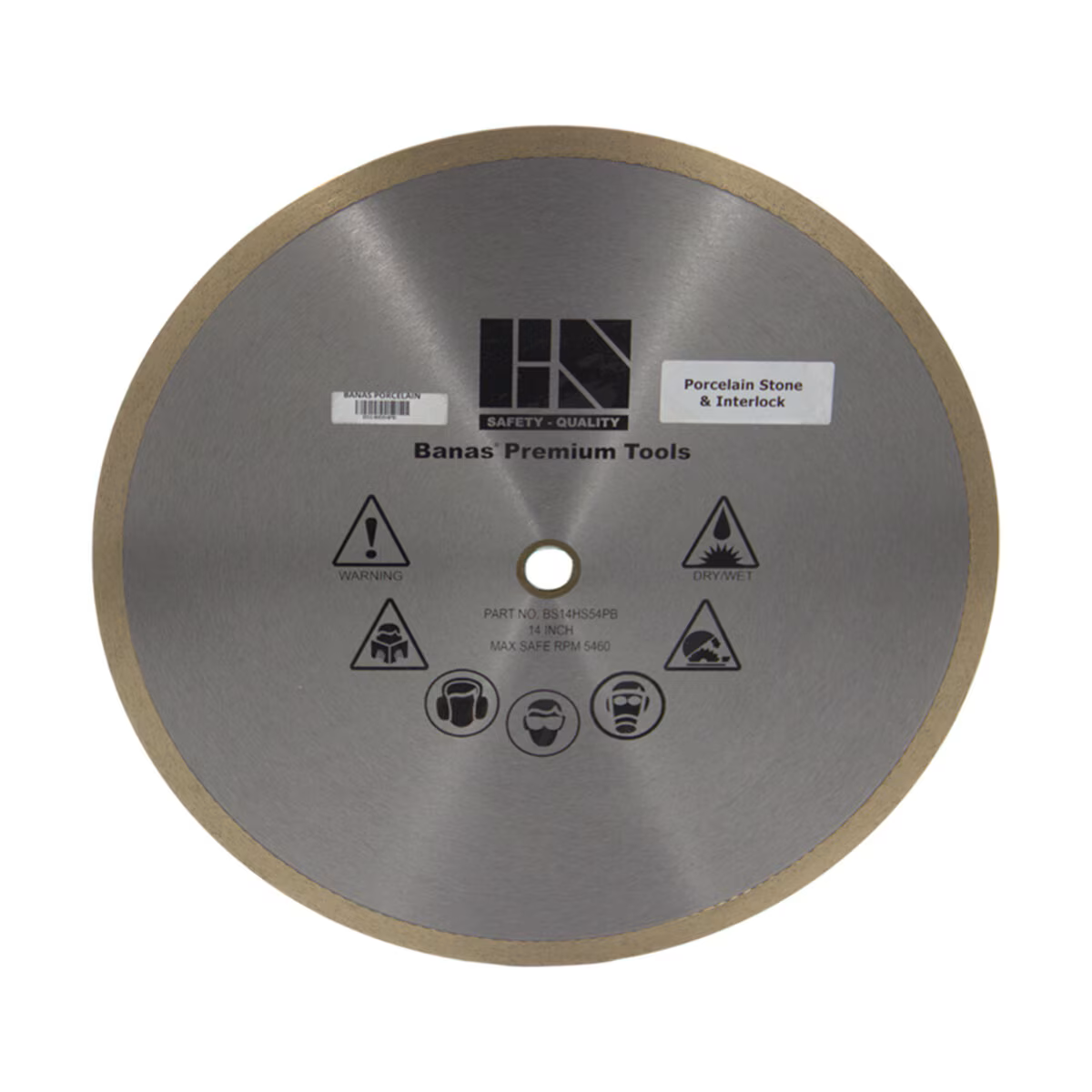 A durable 14-inch porcelain cutting blade designed for clean, precise cuts when working with porcelain pavers and slabs.