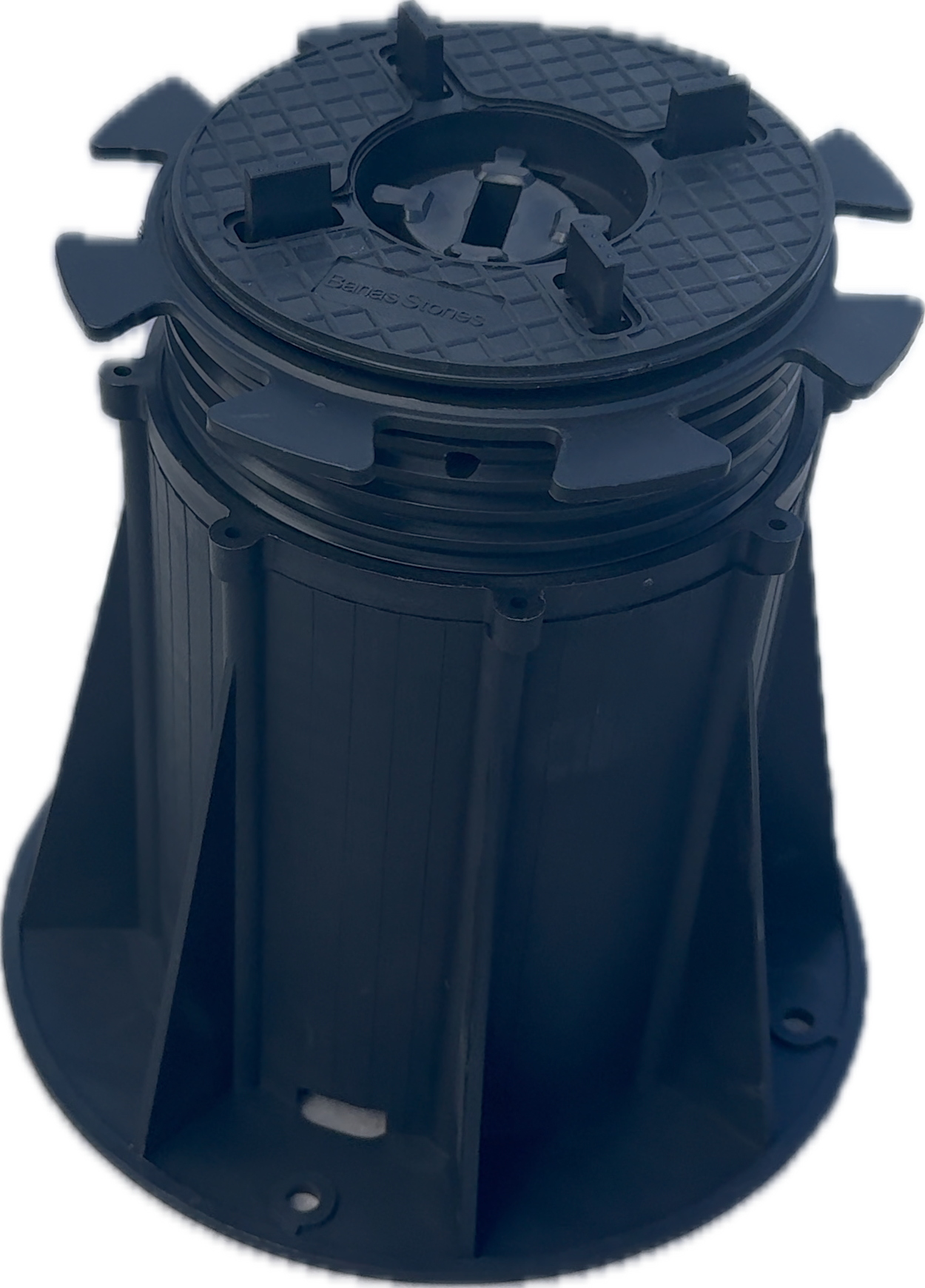 Banas Stones has developed a line of innovative supports designed to elevate and level surfaces, accommodating various heights and slopes. With three different height options, short, tall & large (heavy duty) to offer a flexible solution for constructing over uneven ground, rooftops, or existing structures without the need for extensive groundwork.