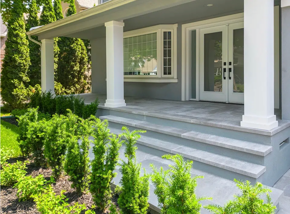 Dove Grey sandstone is quality durable quartzite that has proven its strength and durability over many years. The ability of the stone to withstand all weather conditions is apparent by testing and many freeze/thaw test results. This stone has been used in North America’s harshest climates for many years and has aged beautifully. The natural colour and attractive slip resistant texture makes it extremely versatile for many situations including traditional and contemporary designs. It is a practical hardwearing surface for a wide range of applications.