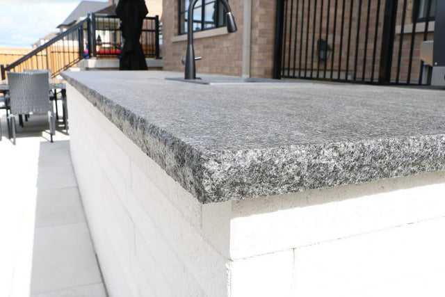Banas Stones® natural stone jumbo slab coping adds value besides serving as a protective cover for wall coping. Adding a jumbo slab on top of existing wall coping will help to protect the wall as well as the wall coping from the elements and reduce the amount of wear from usage of the top portion of the wall.
