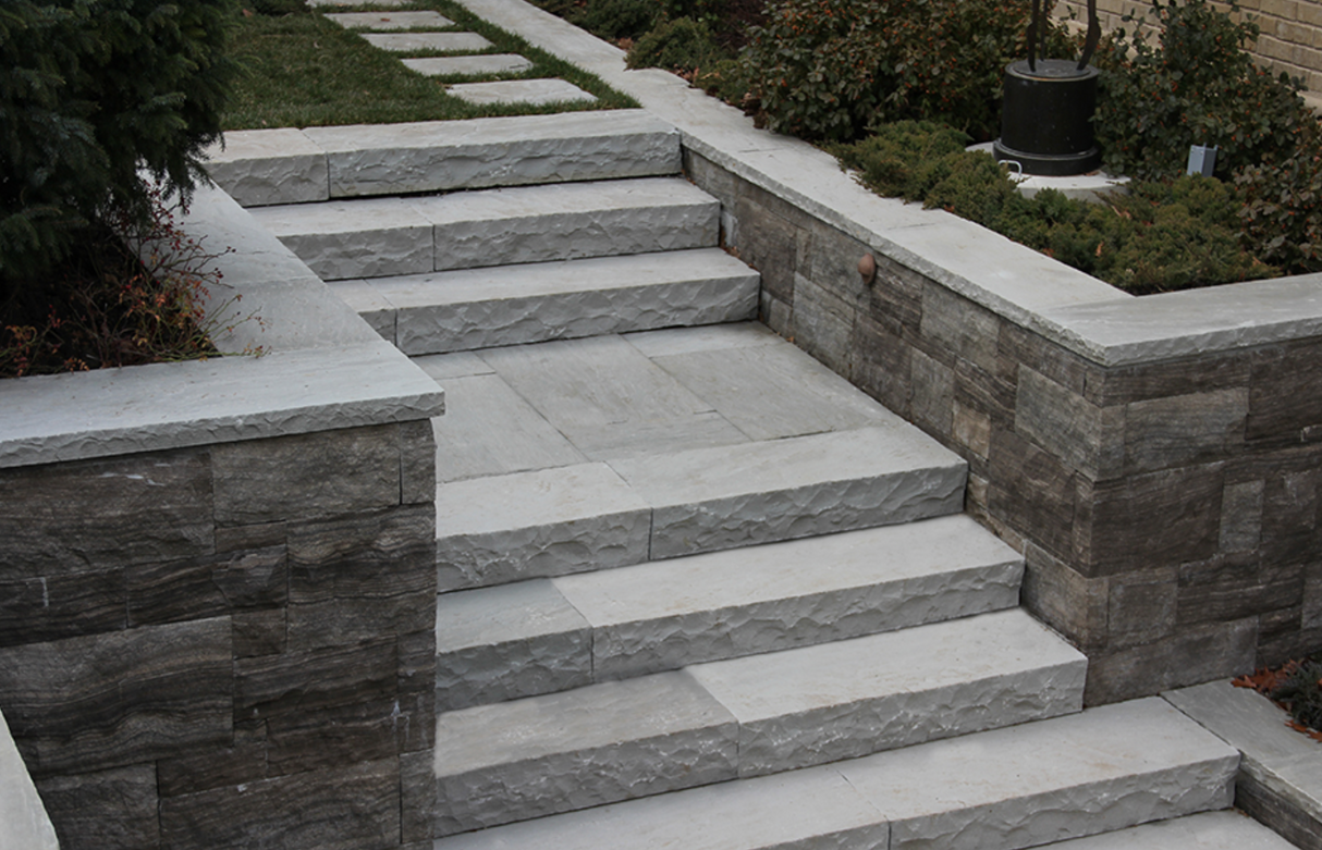 Banas Stones® steps add the elegance of natural stone steps in your garden or patio by using our well crafted and hand dressed risers. These steps are carefully rock faced and finished by craftsmen that create an organic beauty and natural flow.
