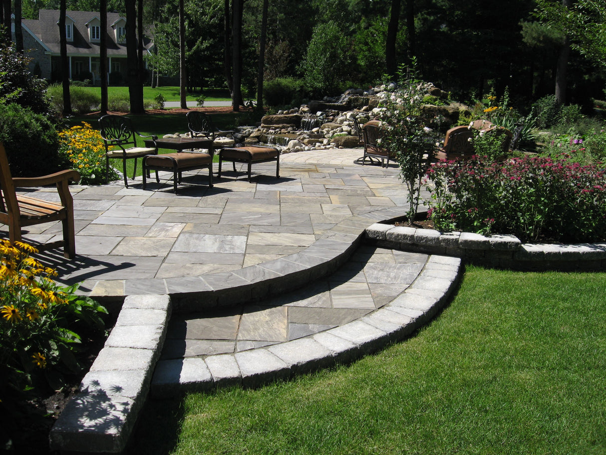 Dove Grey sandstone is quality durable quartzite that has proven its strength and durability over many years. The ability of the stone to withstand all weather conditions is apparent by testing and many freeze/thaw test results. This stone has been used in North America’s harshest climates for many years and has aged beautifully. The natural colour and attractive slip resistant texture makes it extremely versatile for many situations including traditional and contemporary designs. It is a practical hardwearing surface for a wide range of applications.