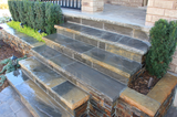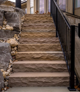 Banas Stones® steps add the elegance of natural stone steps in your garden or patio by using our well crafted and hand dressed risers. These steps are carefully rock faced and finished by craftsmen that create an organic beauty and natural flow.