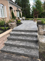 Dove Grey sandstone is quality durable quartzite that has proven its strength and durability over many years. The ability of the stone to withstand all weather conditions is apparent by testing and many freeze/thaw test results. This stone has been used in North America’s harshest climates for many years and has aged beautifully. The natural colour and attractive slip resistant texture makes it extremely versatile for many situations including traditional and contemporary designs. It is a practical hardwearing surface for a wide range of applications.