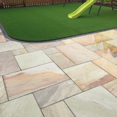 Paving in a pack - contains four different sizes of natural stone - that covers 205 square ft.