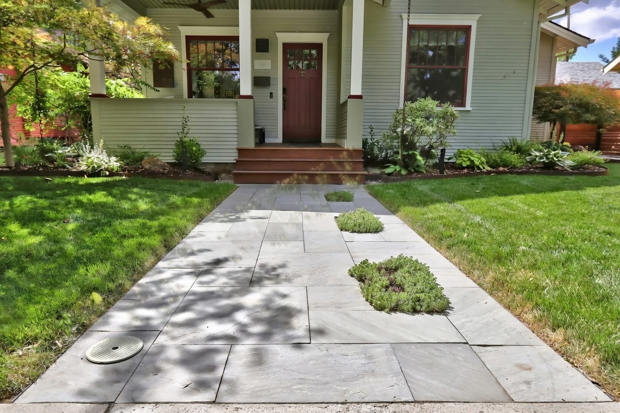 Patios, front yards, backyards, etc can be built using natural stone paver patterns. They blend in or stand out as focal points depending on the color hues of the stone and the surroundings. This versatility contributes to a beautiful and relaxing landscape.