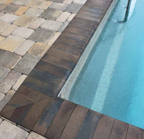 Natural Paving's Classicstone comes in Golden Fossil, Harvest, Lakeland, Promenade and Steel Blue. Premiastone comes in Ivory and Platinum options. Need to see other options? Check out our other pool copings in our gallery here.