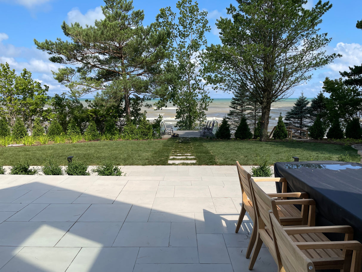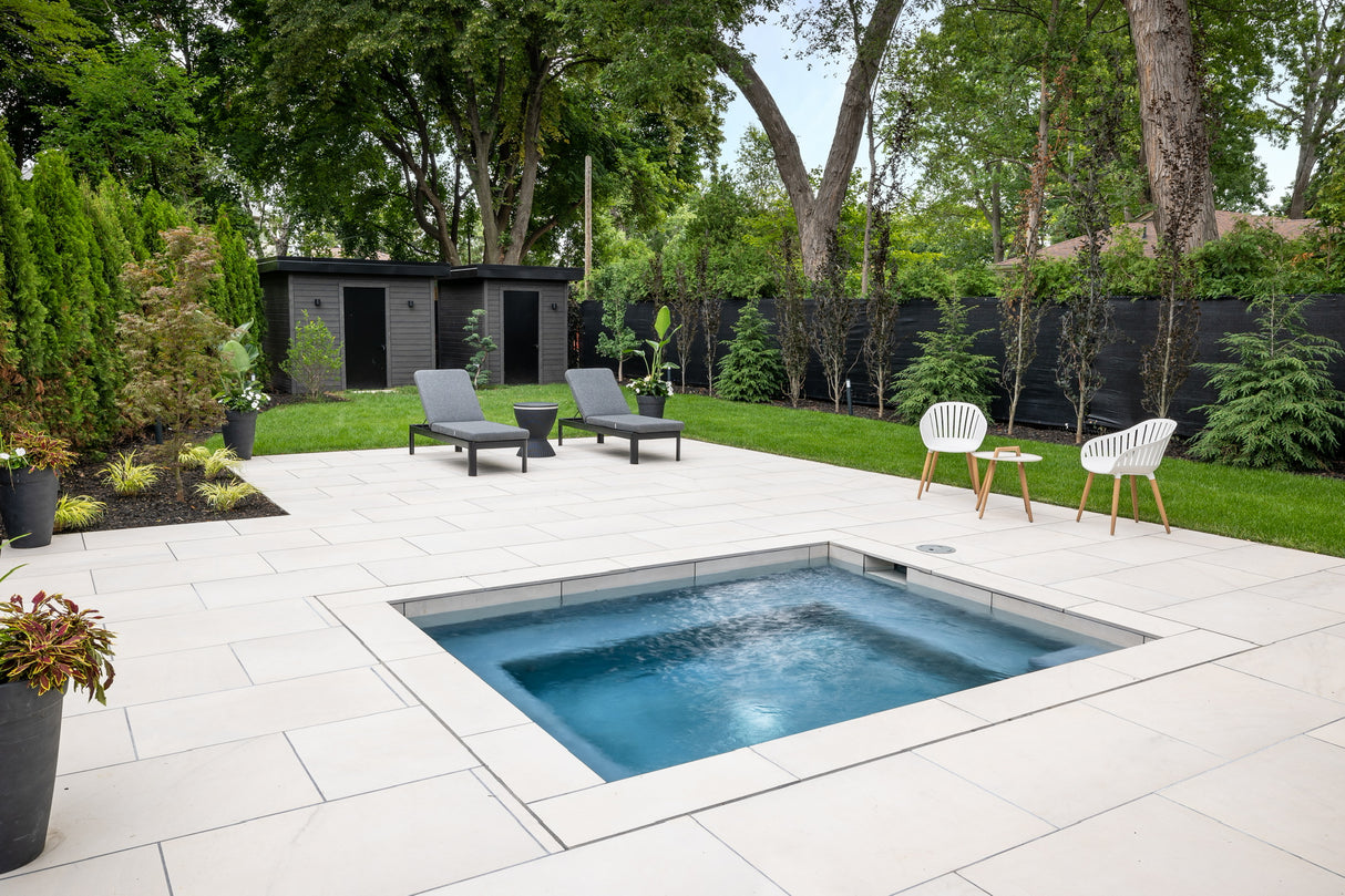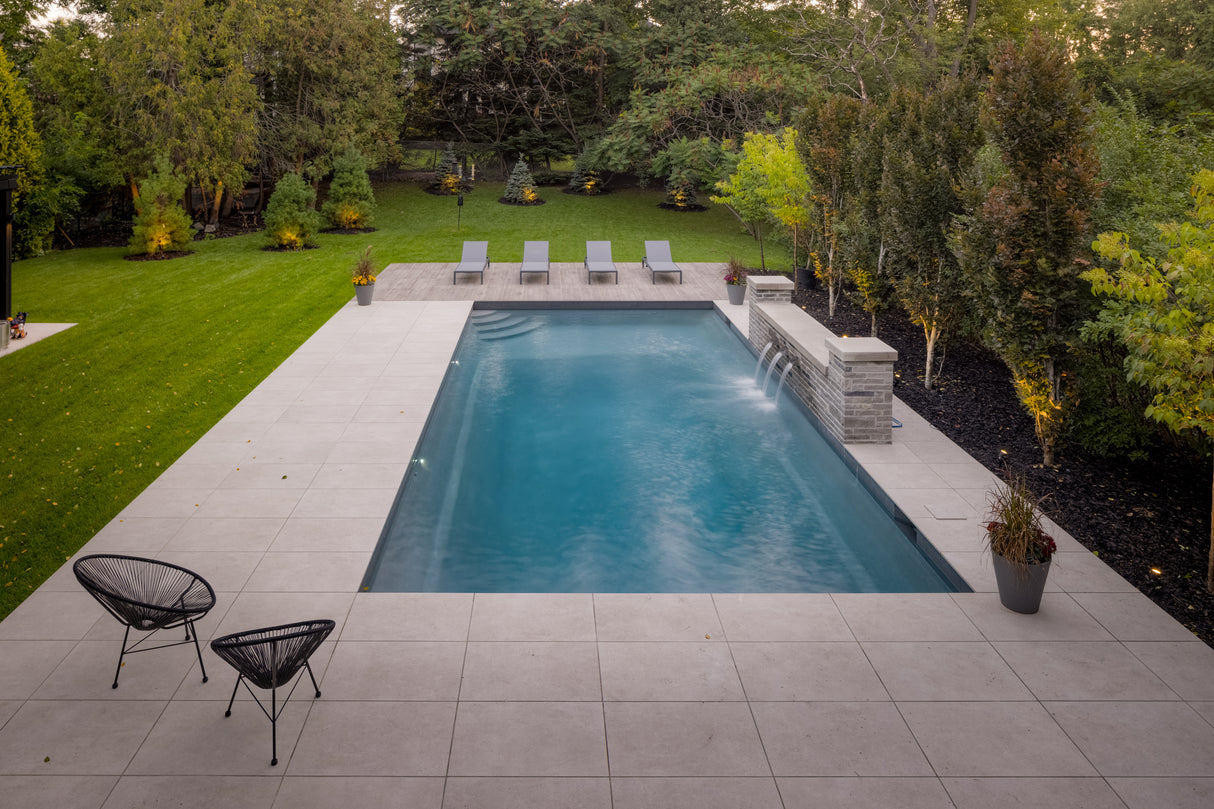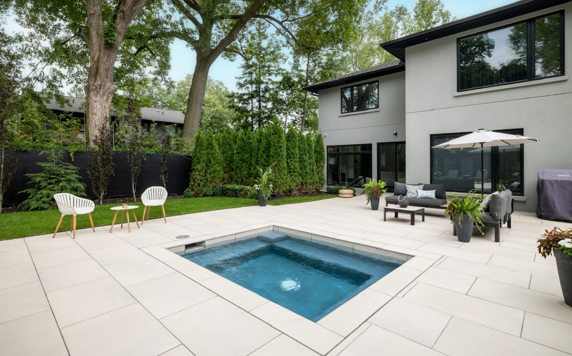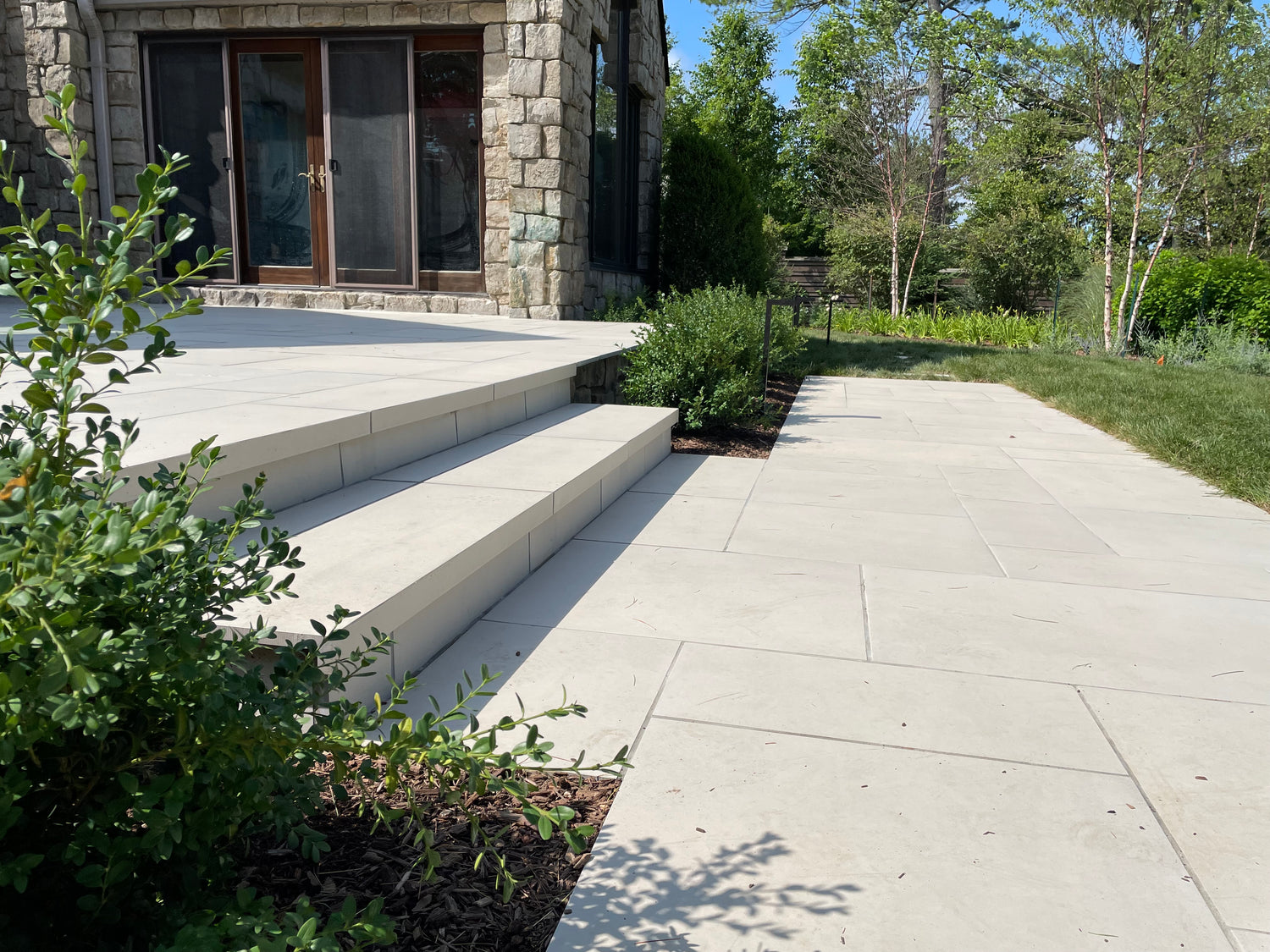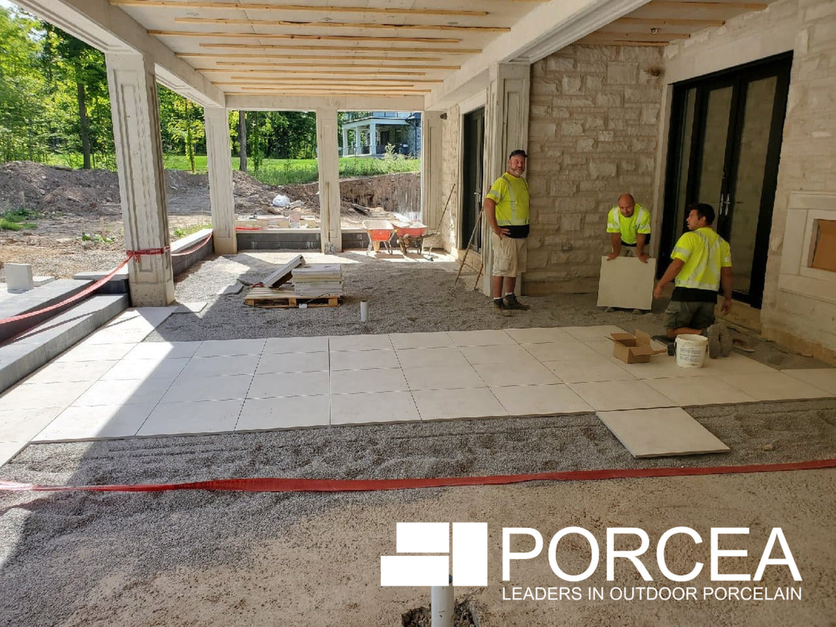 It has a sandblasted texture with a light cream colour tone that is stain-resistant and maintenance-free. The colour tone is lighter than our Porcea Coast, with a very subtle off-white colour tone that works perfectly with Indiana limestone masonry. Porcea Amalfi is the best outdoor porcelain tile to match with natural stone copings such as Algonquin Limestone Sandblasted.
