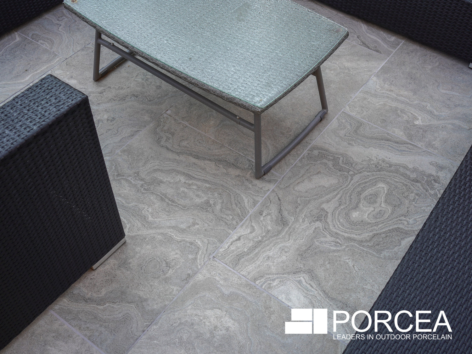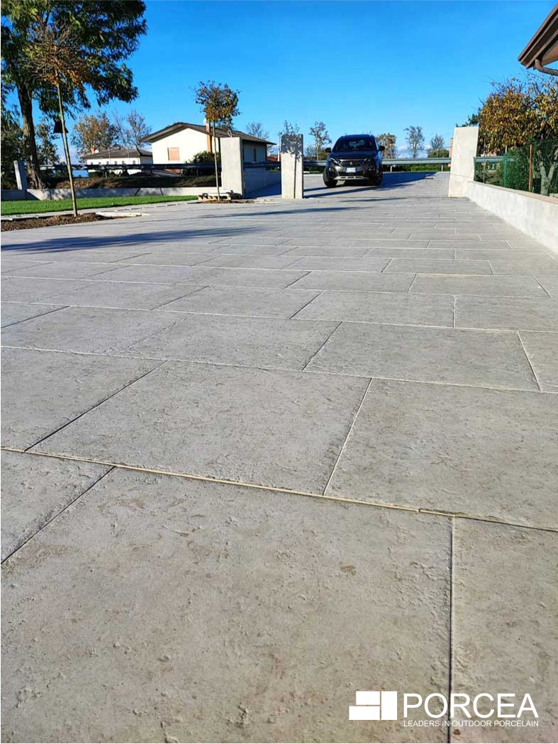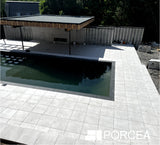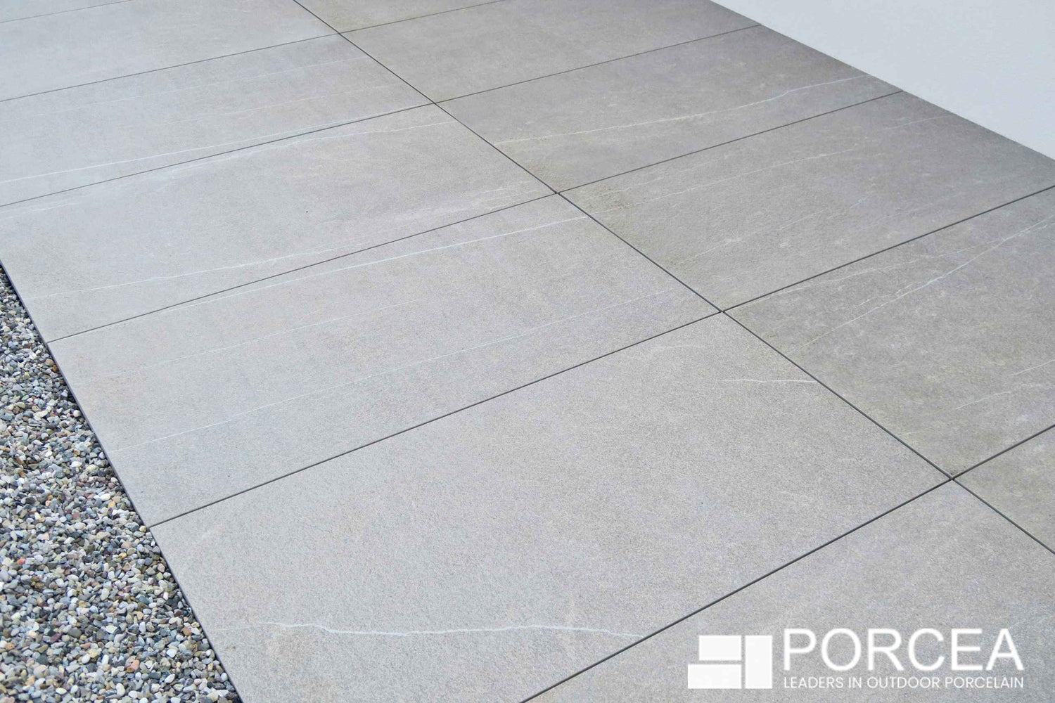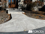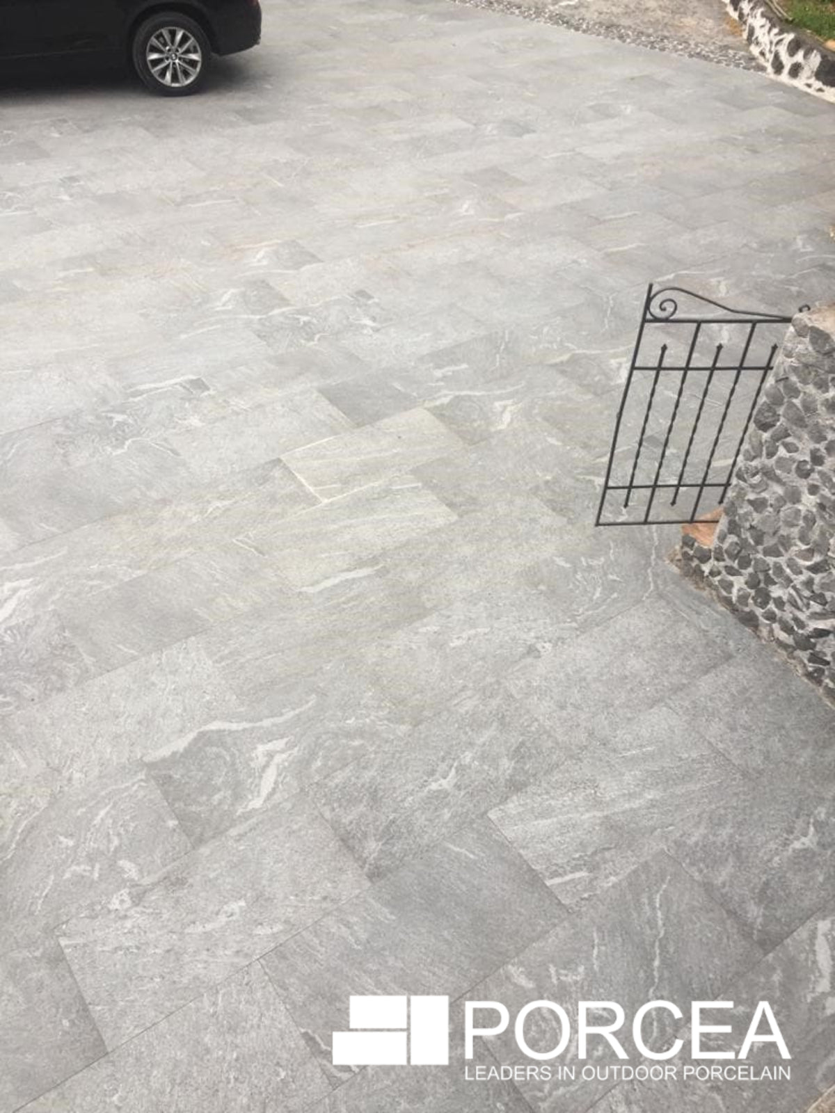 Porcea Silver is available in our 3 cm porcelain tile option which means it can be wet laid on a driveway with a concrete base, allowing for vehicular & pedestrian traffic.