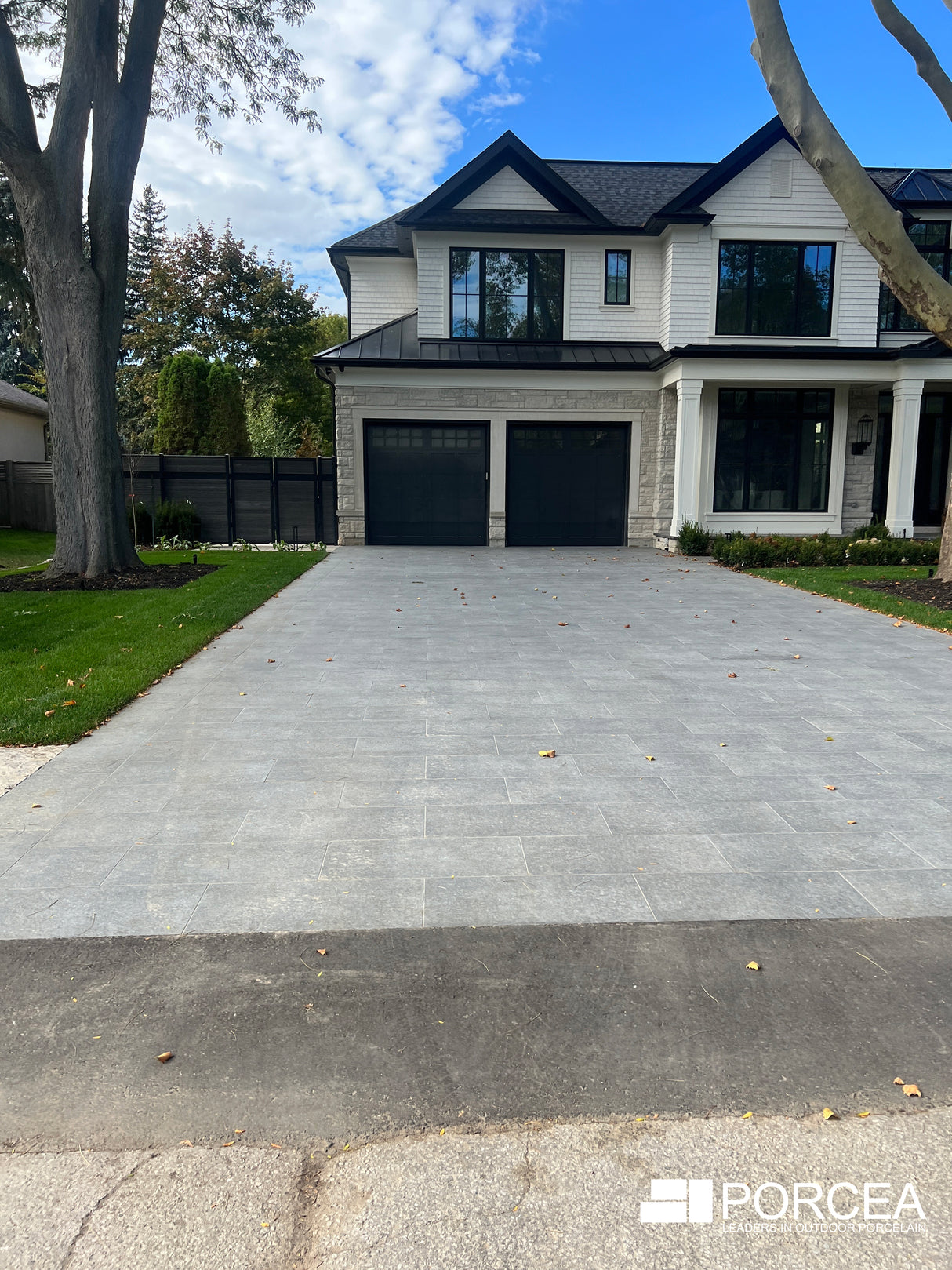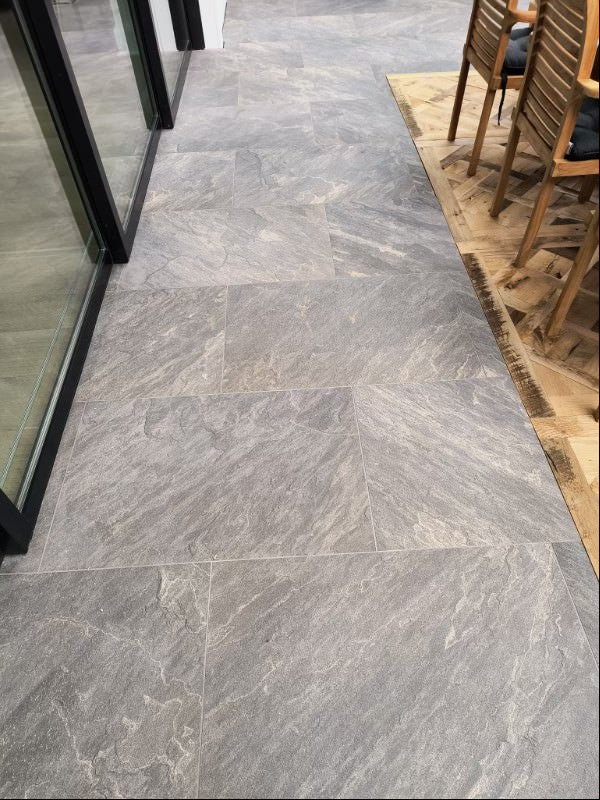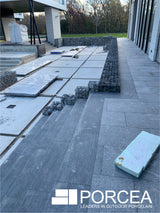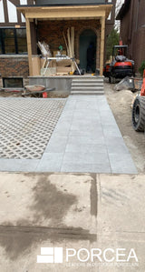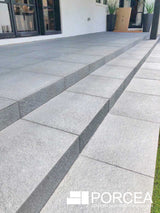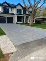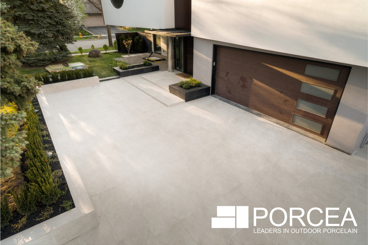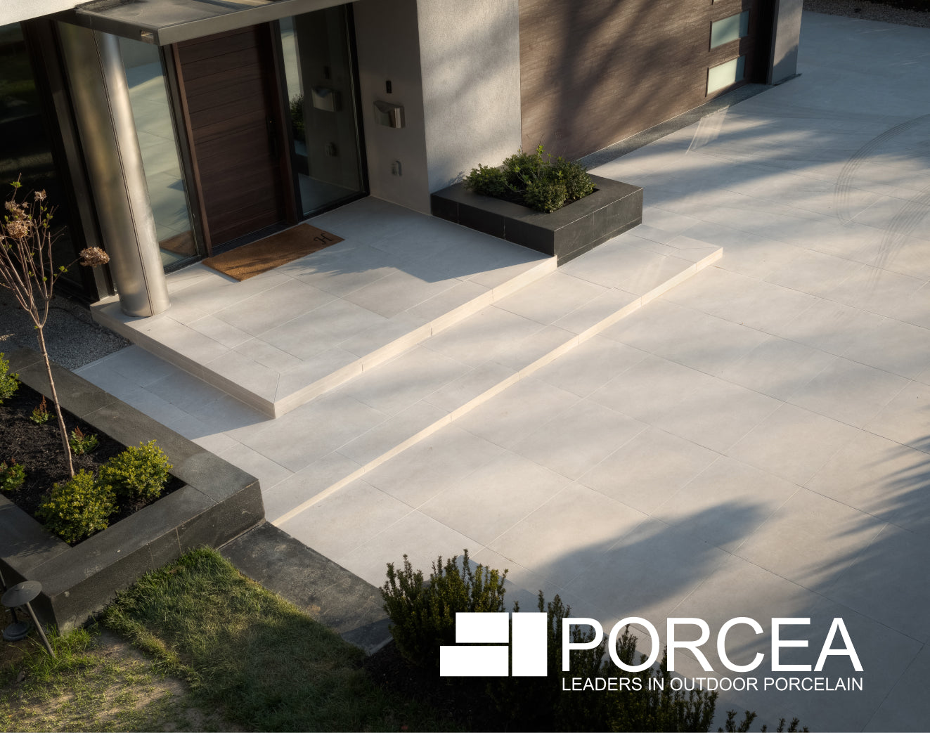 Porcea Silver is available in our 3 cm porcelain tile option which means it can be wet laid on a driveway with a concrete base, allowing for vehicular & pedestrian traffic.
