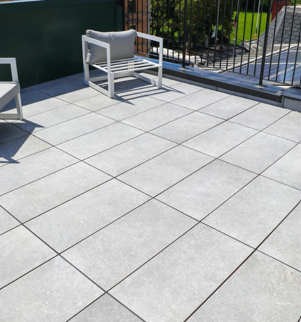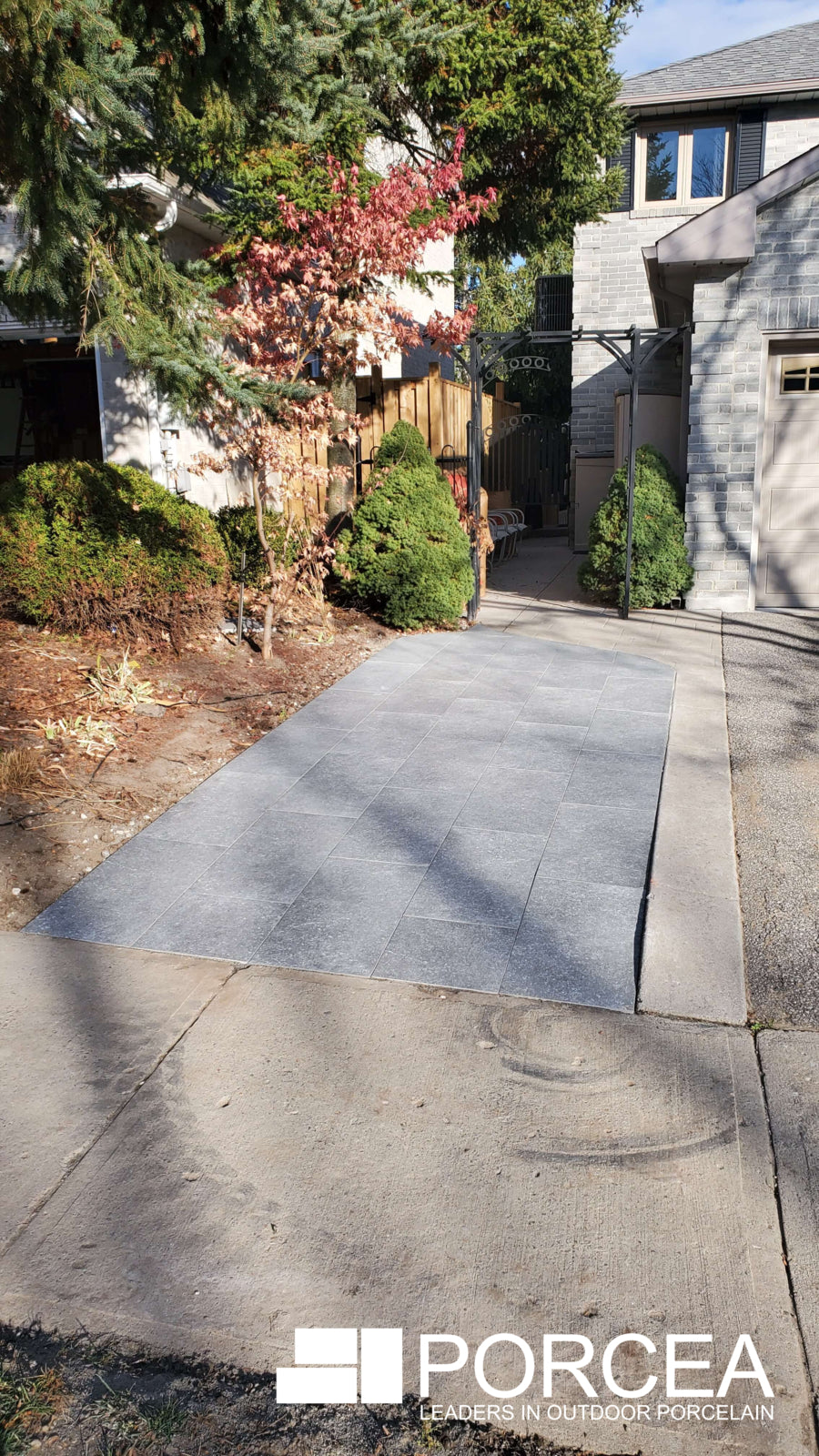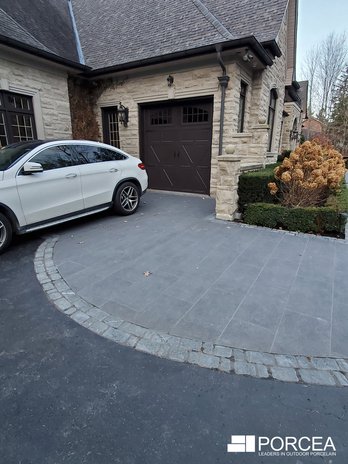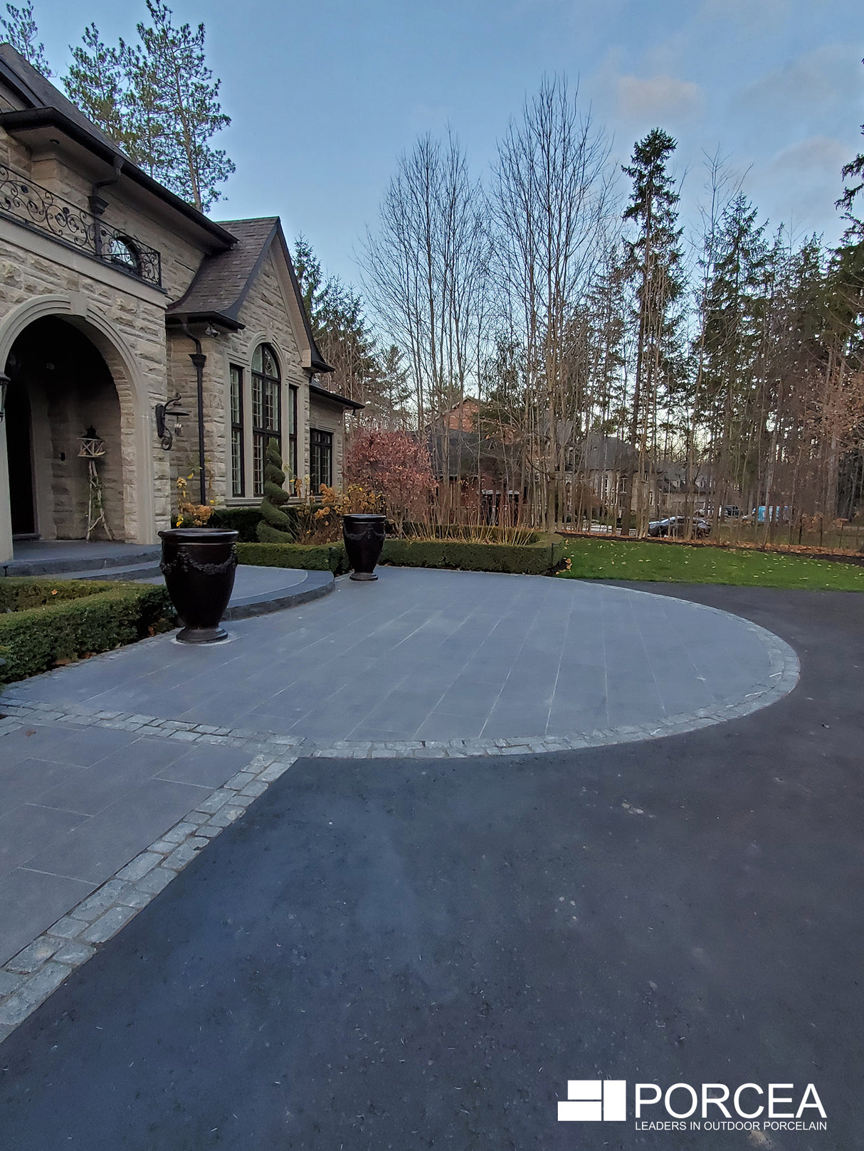 Porcea Silver is available in our 3 cm porcelain tile option which means it can be wet laid on a driveway with a concrete base, allowing for vehicular & pedestrian traffic.
