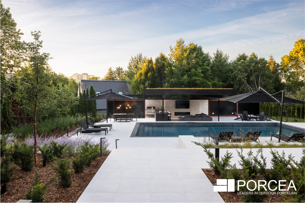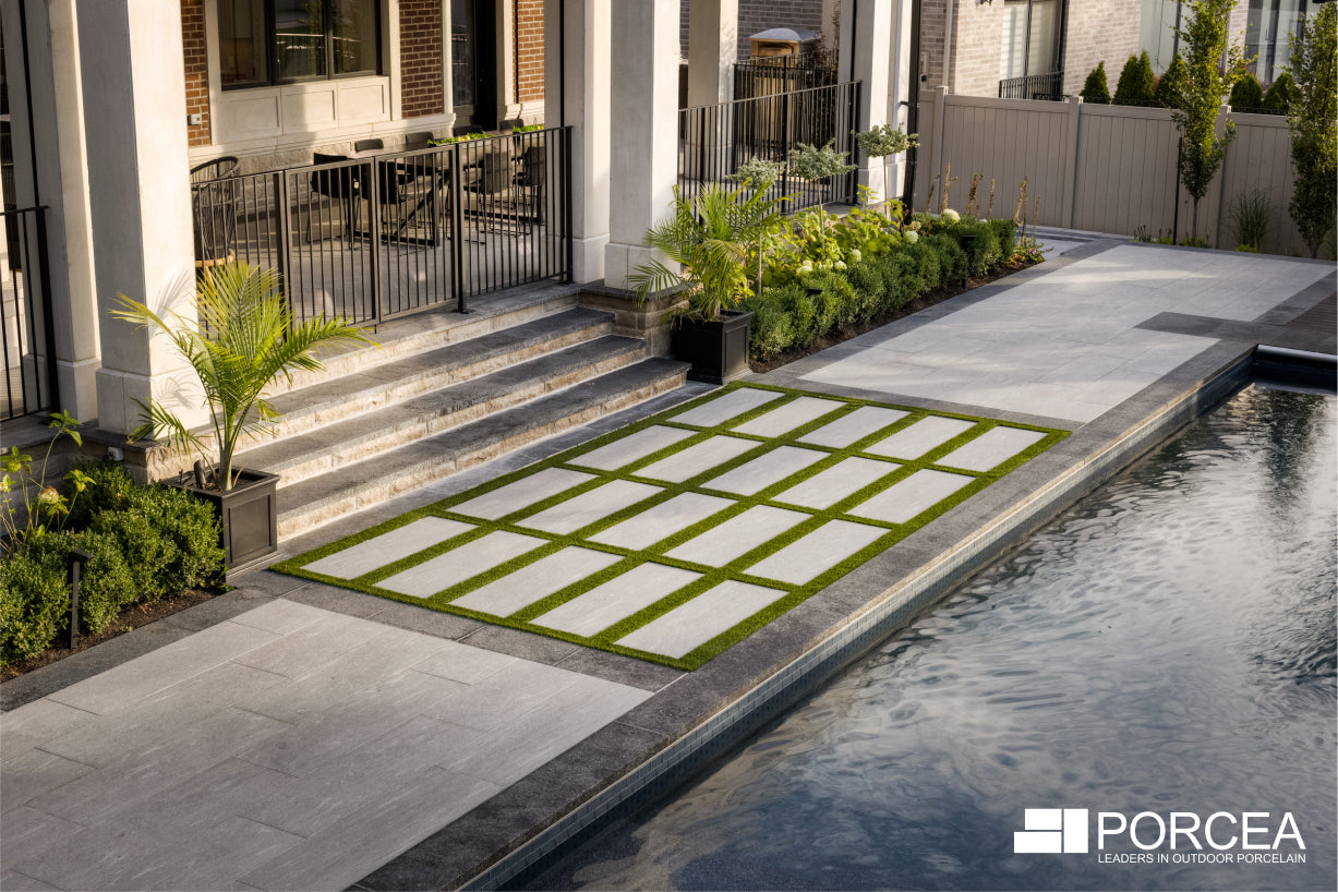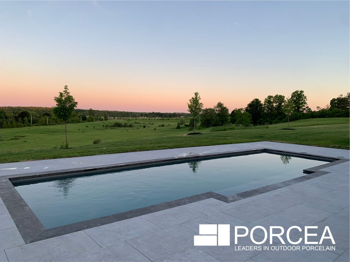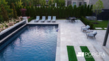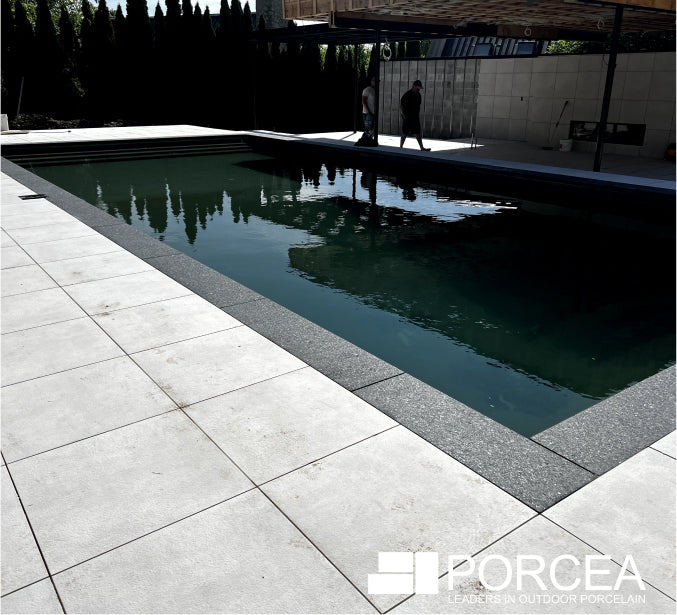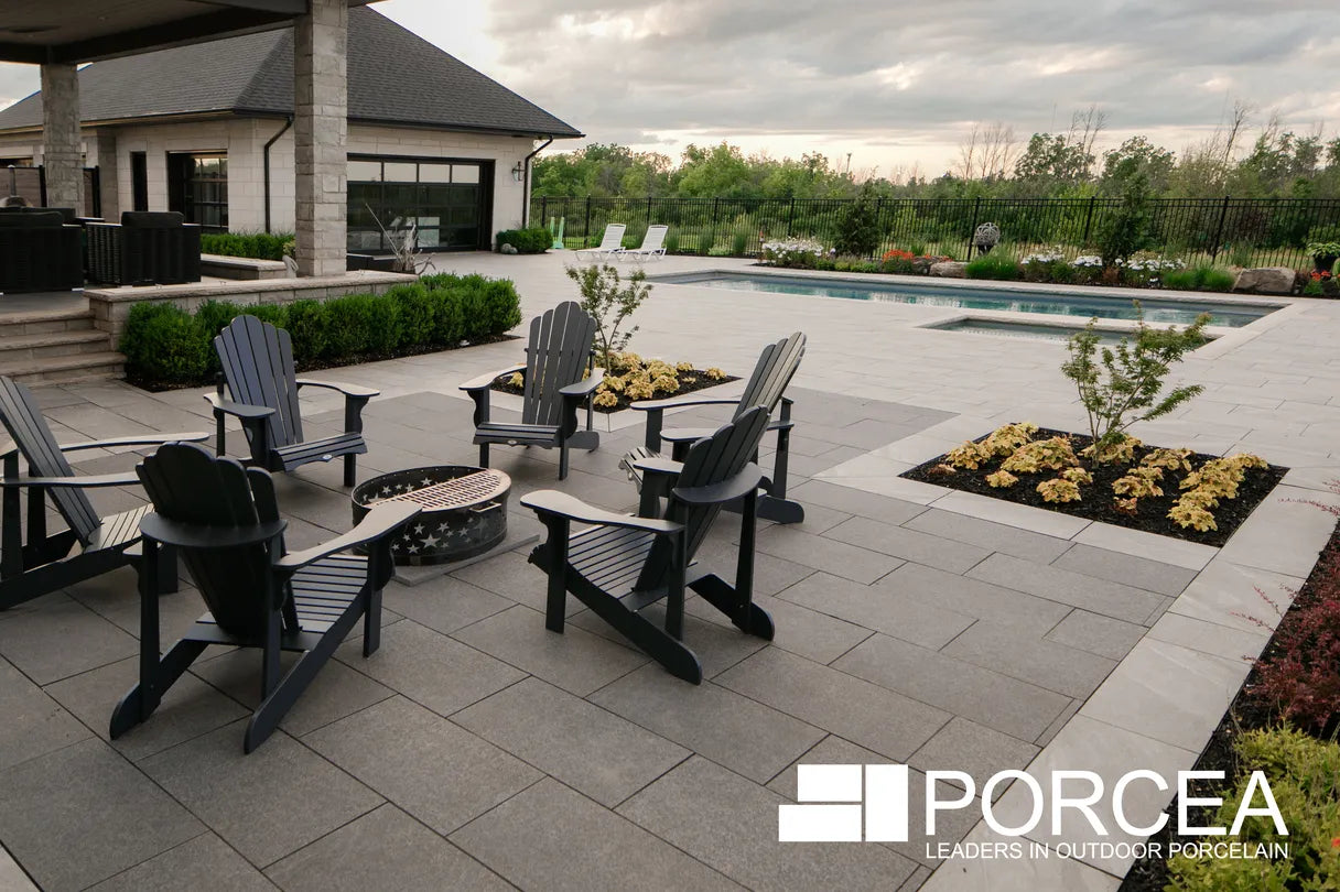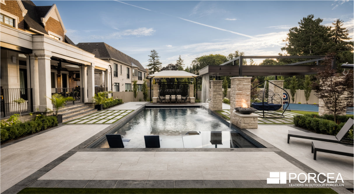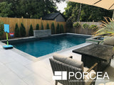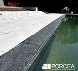 Porcea Imperial is a premier outdoor porcelain tile that flawlessly complements the elegance of Saga, Imperial Black, or Sagar Black sandstone. These natural stones have already gained widespread acceptance in North America, making Porcea Imperial an ideal choice for entrance walkways and patio areas. Pair it with matching natural stone copings for a truly cohesive aesthetic.