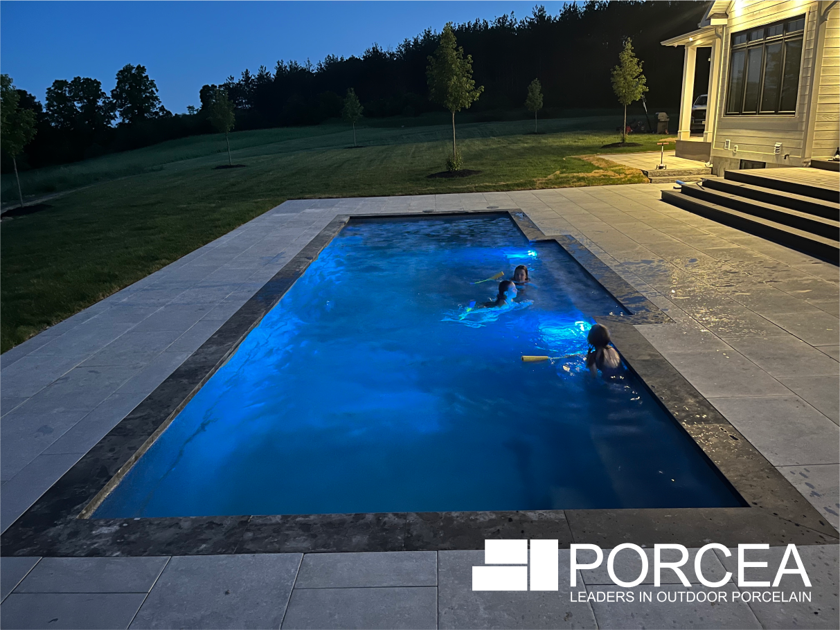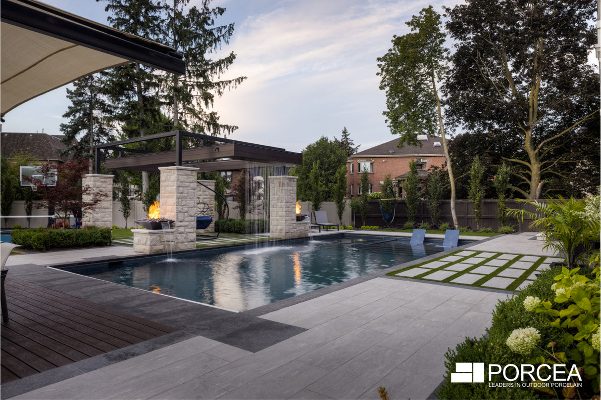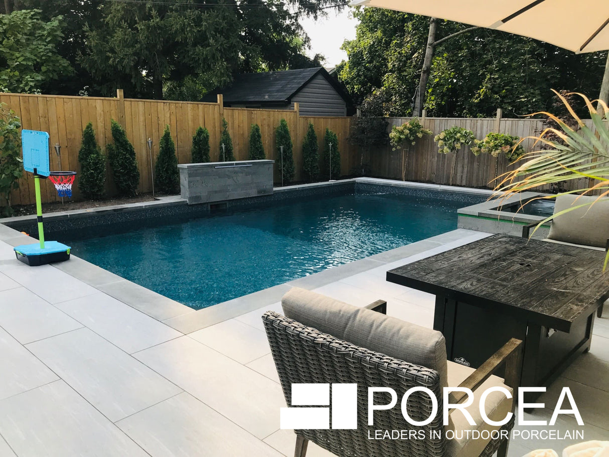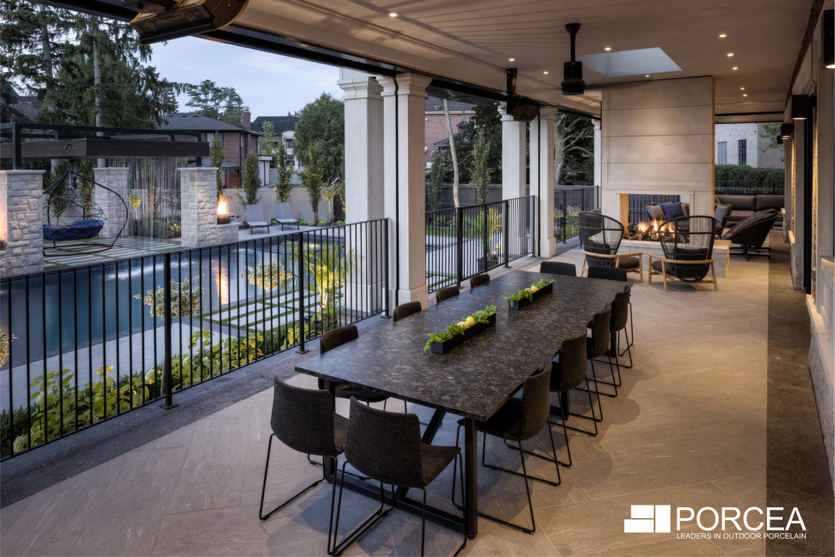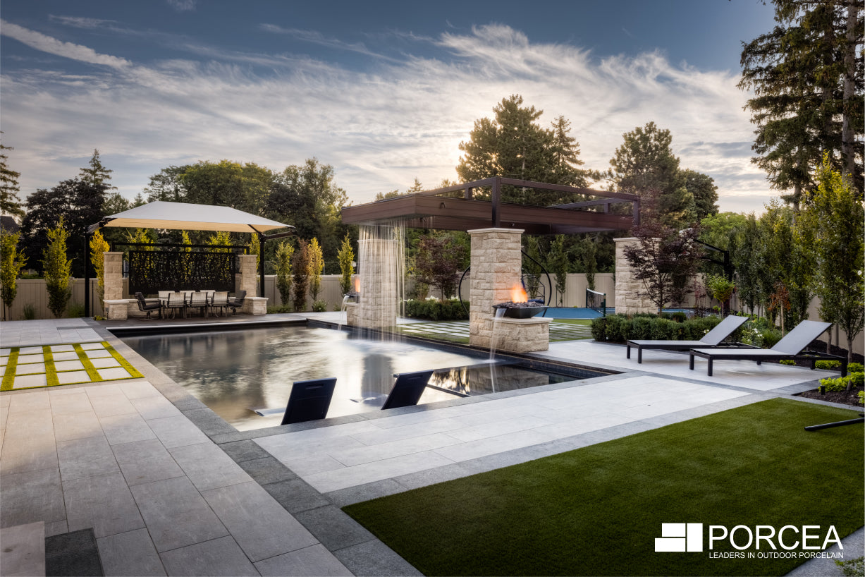 Porcea Imperial is a premier outdoor porcelain tile that flawlessly complements the elegance of Saga, Imperial Black, or Sagar Black sandstone. These natural stones have already gained widespread acceptance in North America, making Porcea Imperial an ideal choice for entrance walkways and patio areas. Pair it with matching natural stone copings for a truly cohesive aesthetic.