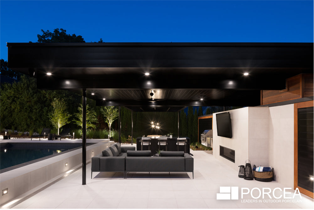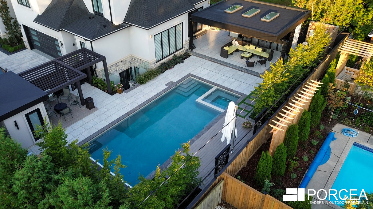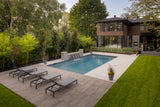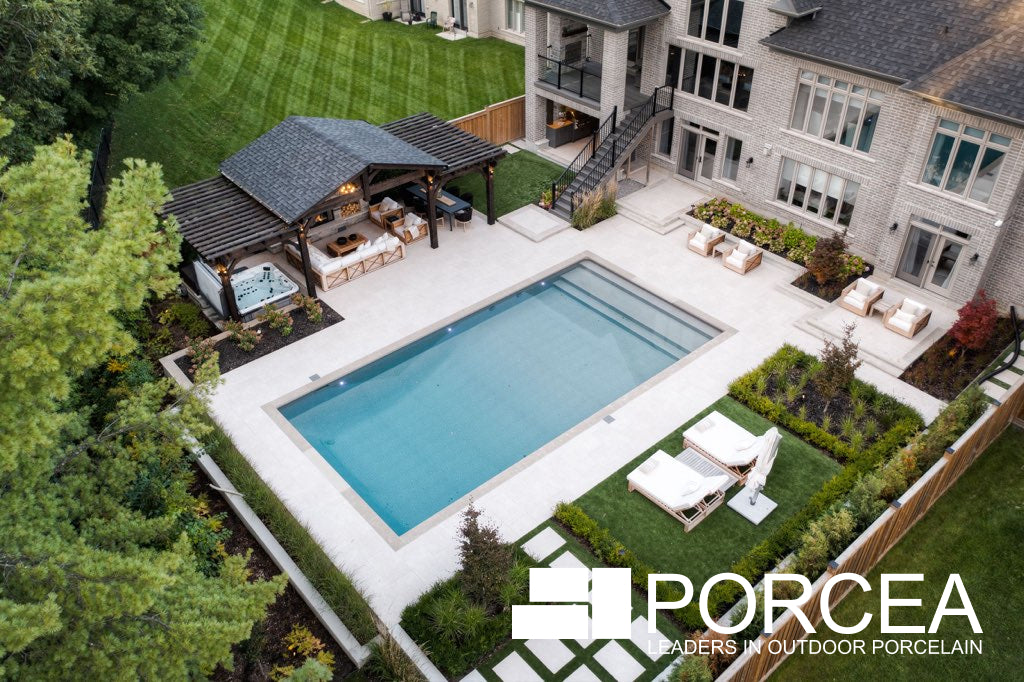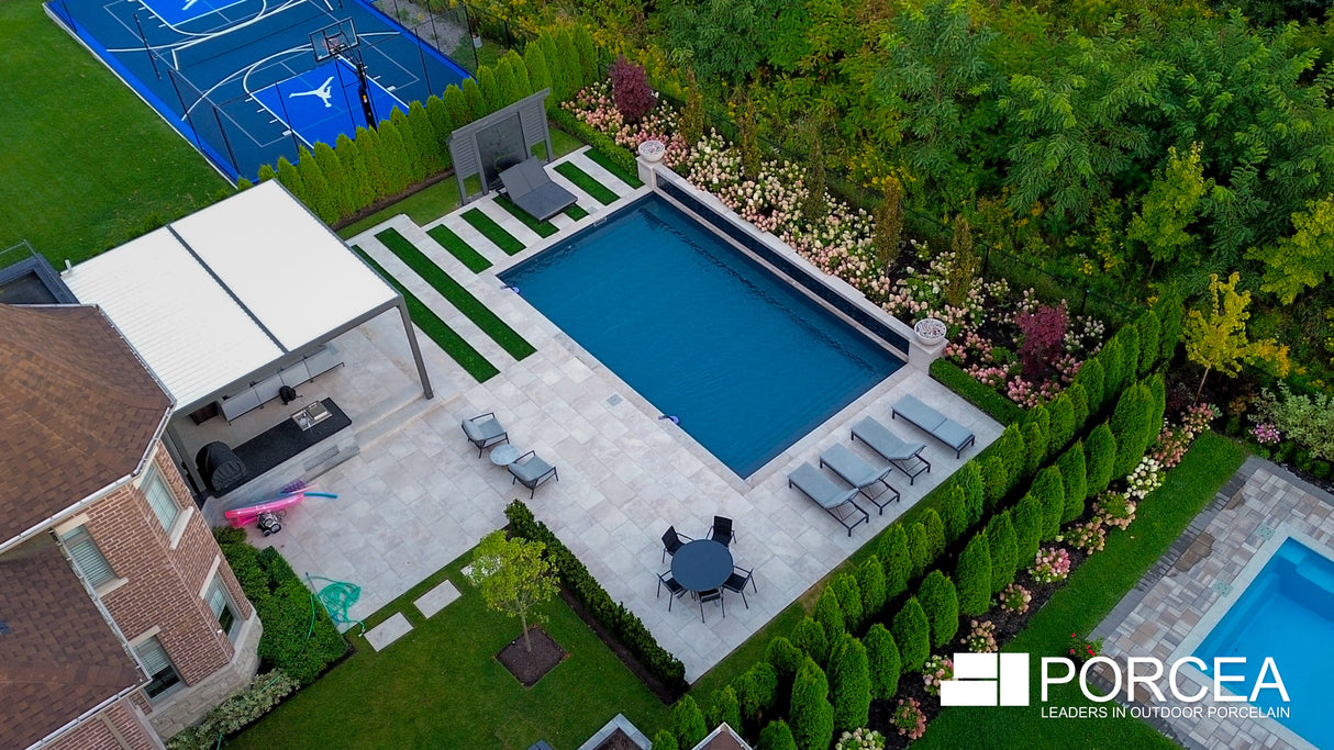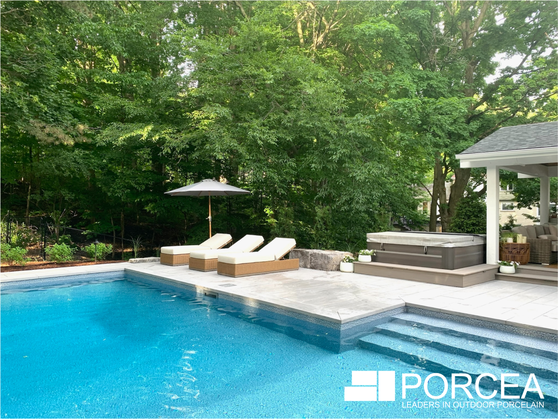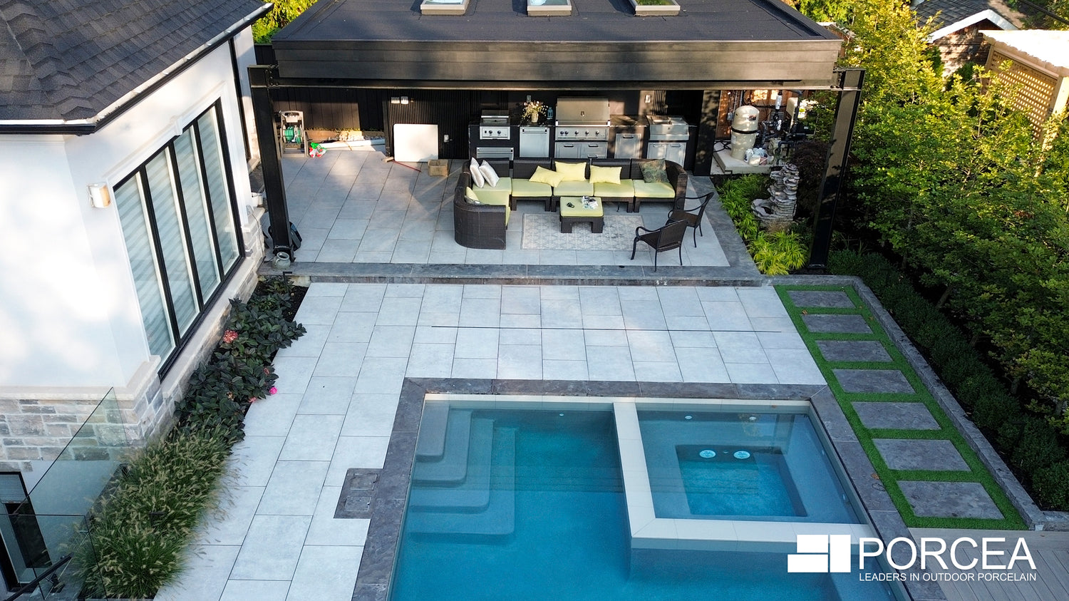 Porcea Imperial is a premier outdoor porcelain tile that flawlessly complements the elegance of Saga, Imperial Black, or Sagar Black sandstone. These natural stones have already gained widespread acceptance in North America, making Porcea Imperial an ideal choice for entrance walkways and patio areas. Pair it with matching natural stone copings for a truly cohesive aesthetic.