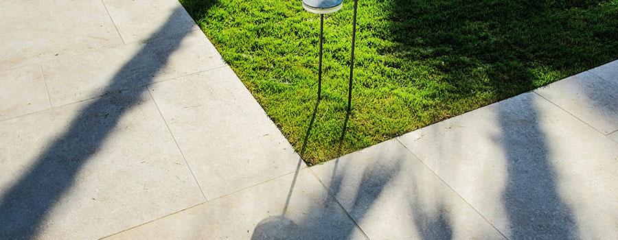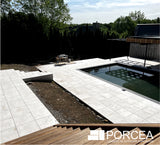 A sandblasted texture with a light grey colour tone that is stain-resistant and maintenance-free. The colour tone is lighter than our Porcea Moongrey, with a very subtle off-grey colour tone. The fleuri and shells found on this premium outdoor porcelain paver are both charming and subtle, allowing for an extremely premium and modern design profile.