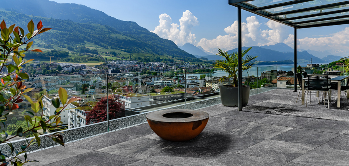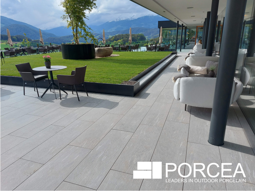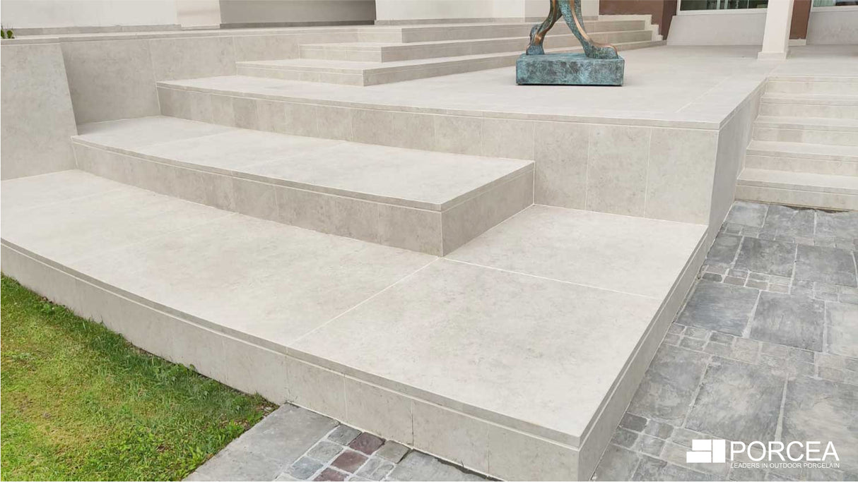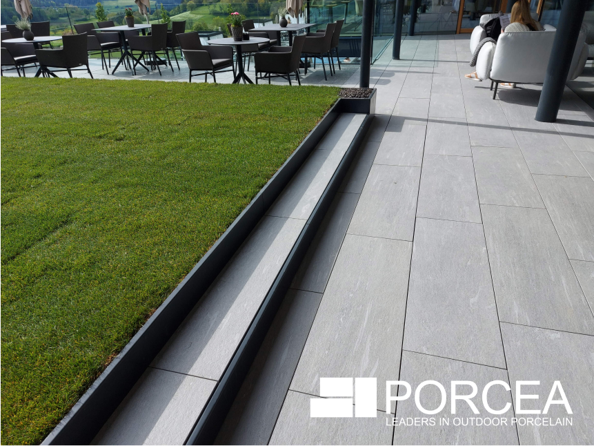 Porcea Gris in particular is available in our widest range of sizes including very large format outdoor porcelain sheets including 48×48” (120×120 cm) and 48×96” (120×240 cm), which means you can achieve a very clean look in your projects without any joints.
