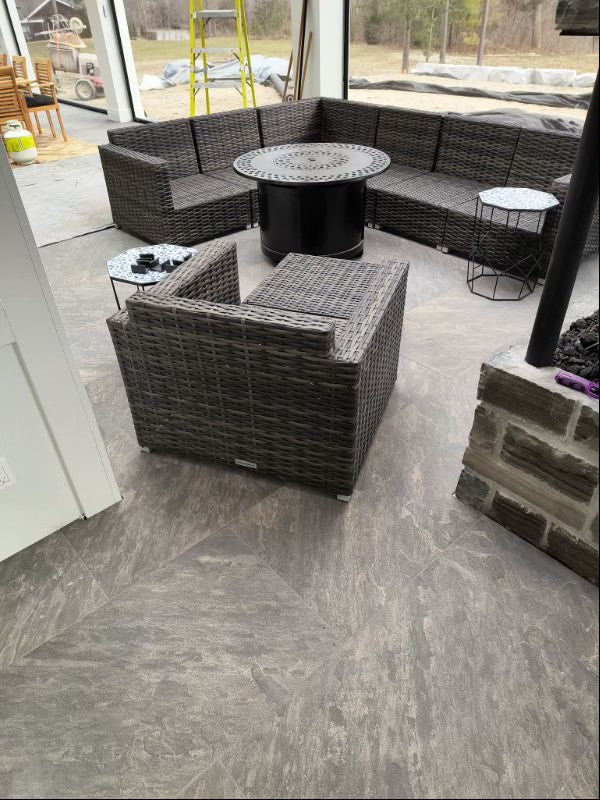 Porcea Slate Grey is a visual masterpiece, combining the earthy richness of brown with the cool elegance of grey tones. This carefully curated colour palette creates a versatile and contemporary aesthetic, making it a perfect choice for outdoor projects where a balance of warmth and modernity is desired.