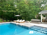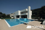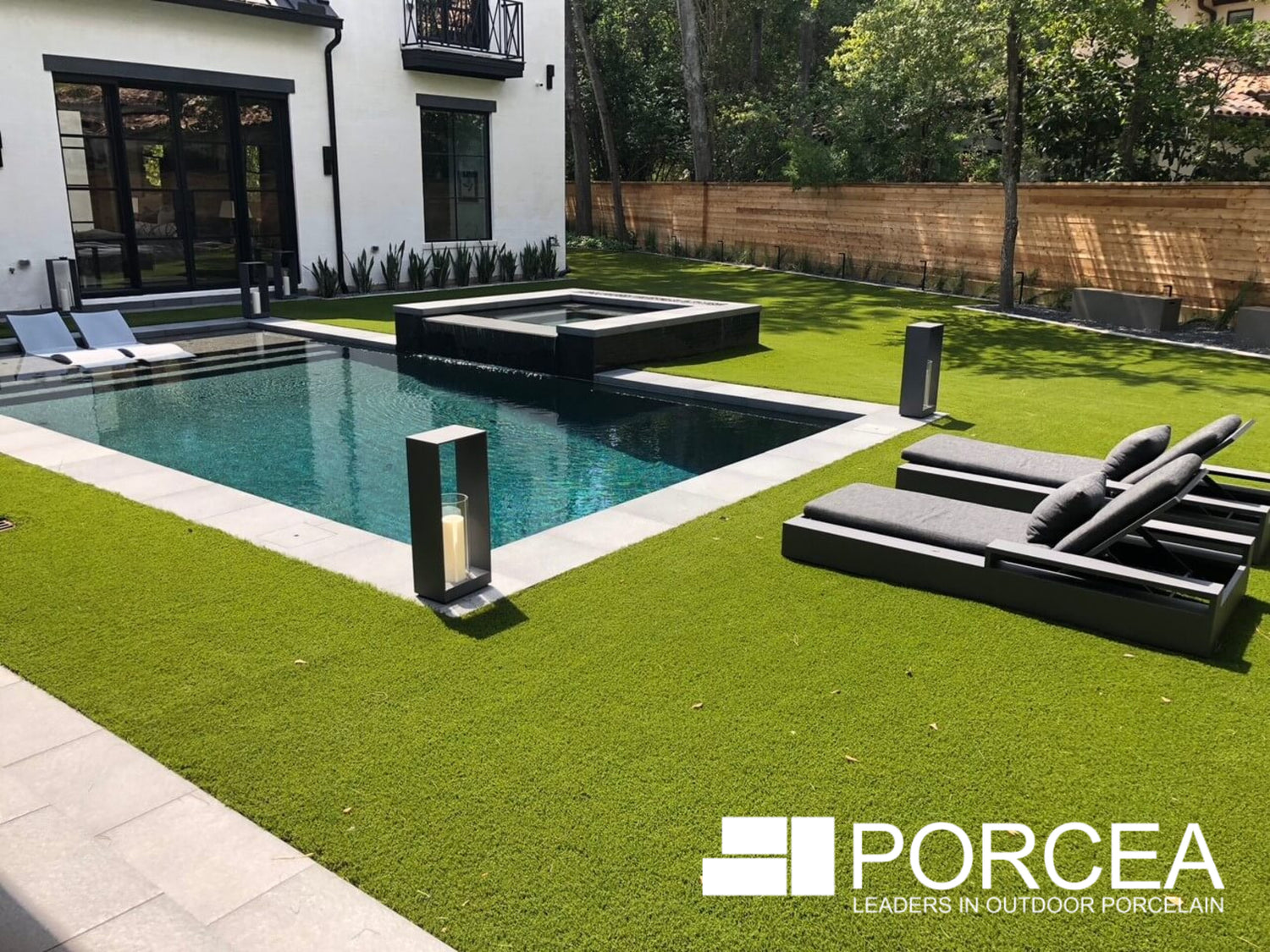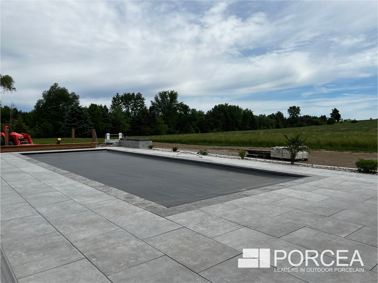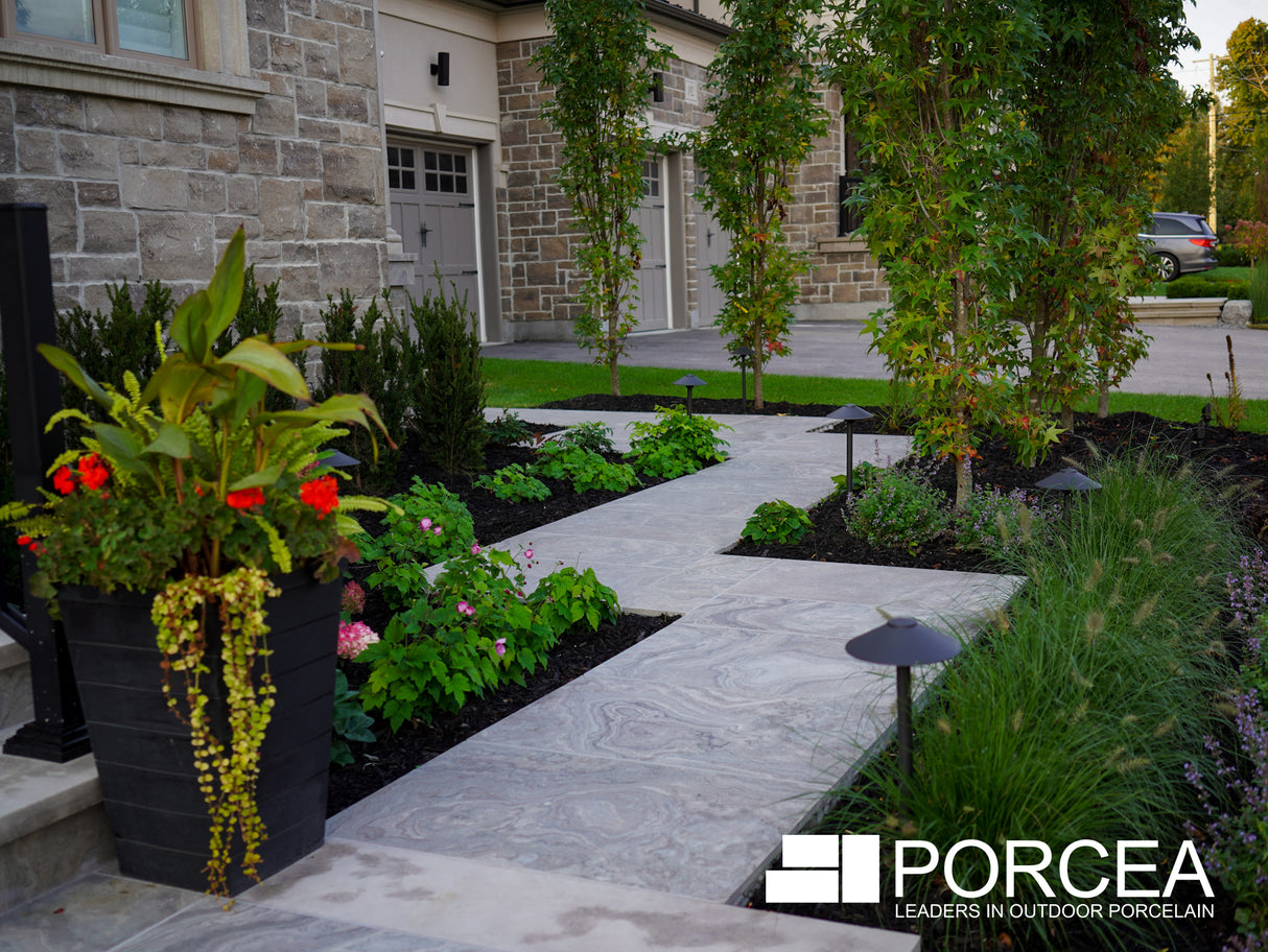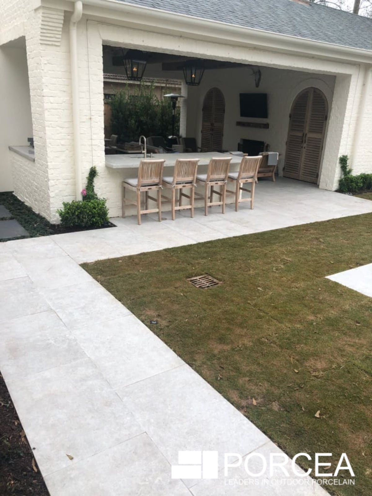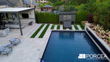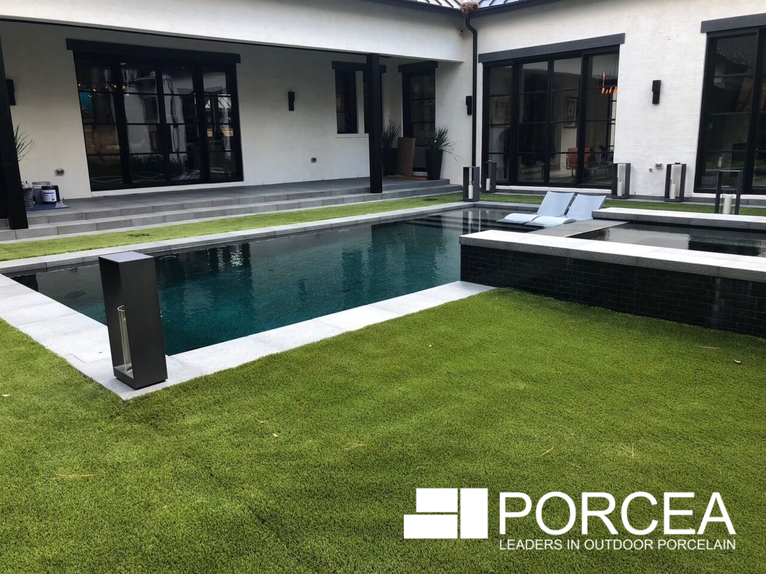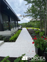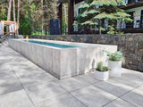 The clean, light gray tone is very modern in appearance and it is often called the “Most Modern Outdoor Stone” although it is a porcelain paver. All Porcea Stone pavers have less than 0.5% water absorption which allows for the porcelain to easily be washed and cleaned from even a light rainfall.