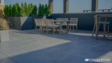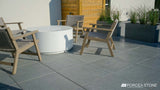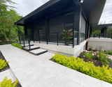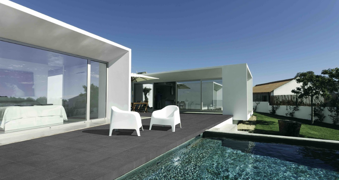 Besides the rich black colour, the surface has tiny crystals that sparkle and shine in the sunlight, giving this outdoor porcelain tile its unique name of Porcea Black Opal. Unlike black granite that is one of the most expensive options in outdoor landscape pavers, Porcea Black Opal is a far more competitive option for a residential or commercial project to create a timeless look.
