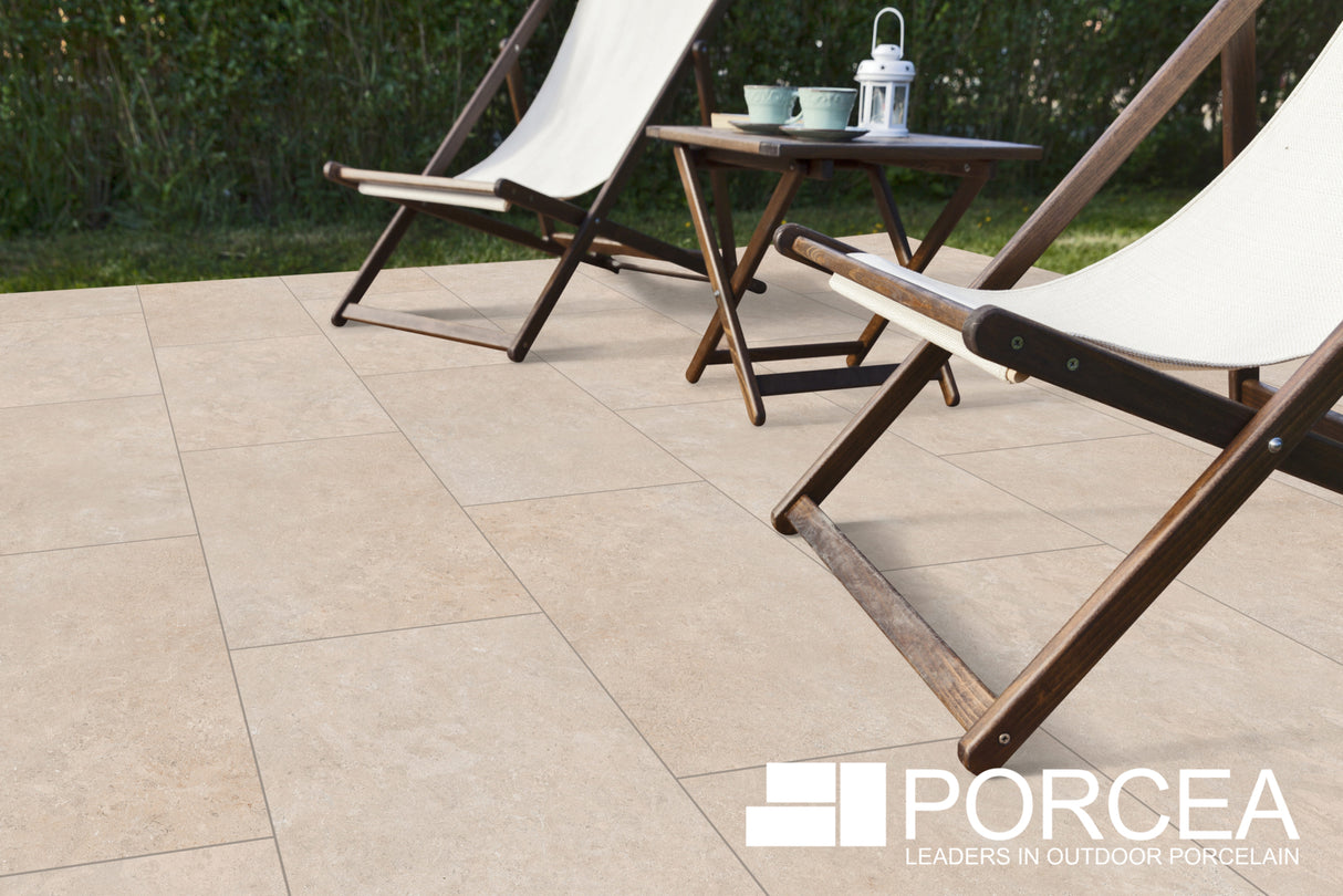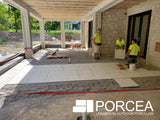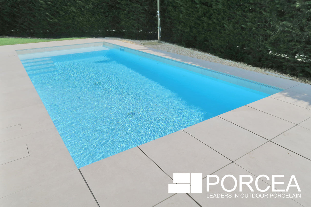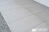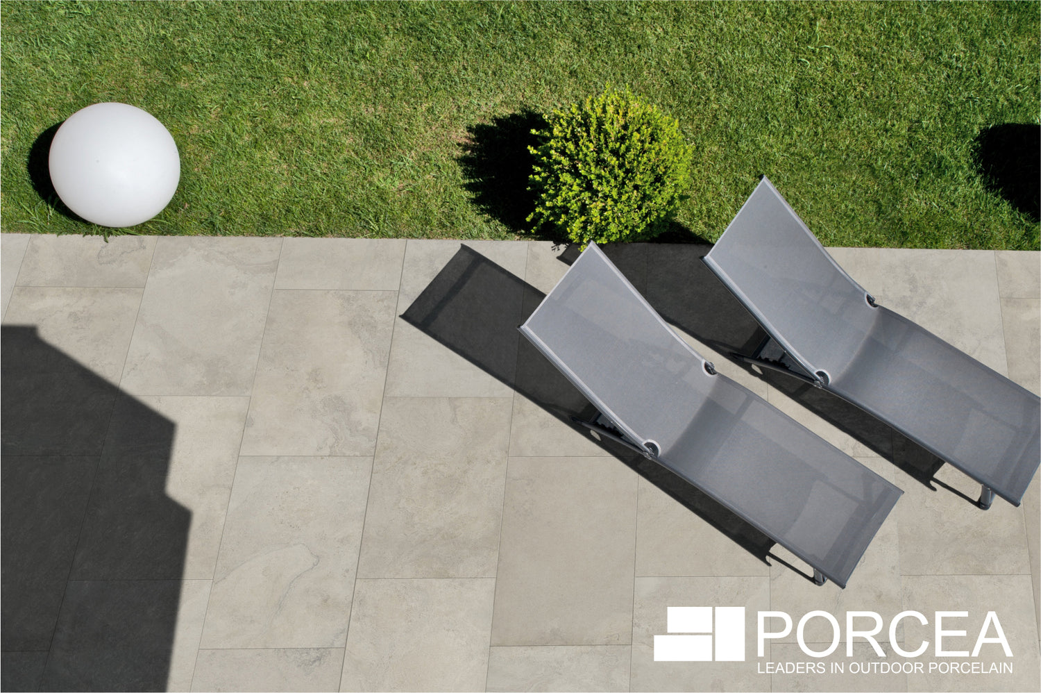 Porcea Coast is a light beige outdoor porcelain tile, available in 2 cm thickness. Outdoor porcelain is suitable for all applications including patios, walkways, pool decks, pedestrian commercial traffic, building facades, veneers, and even vehicular traffic with a concrete base.