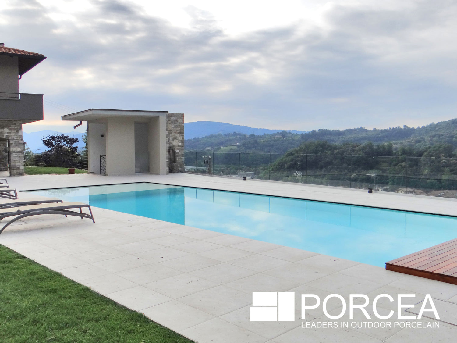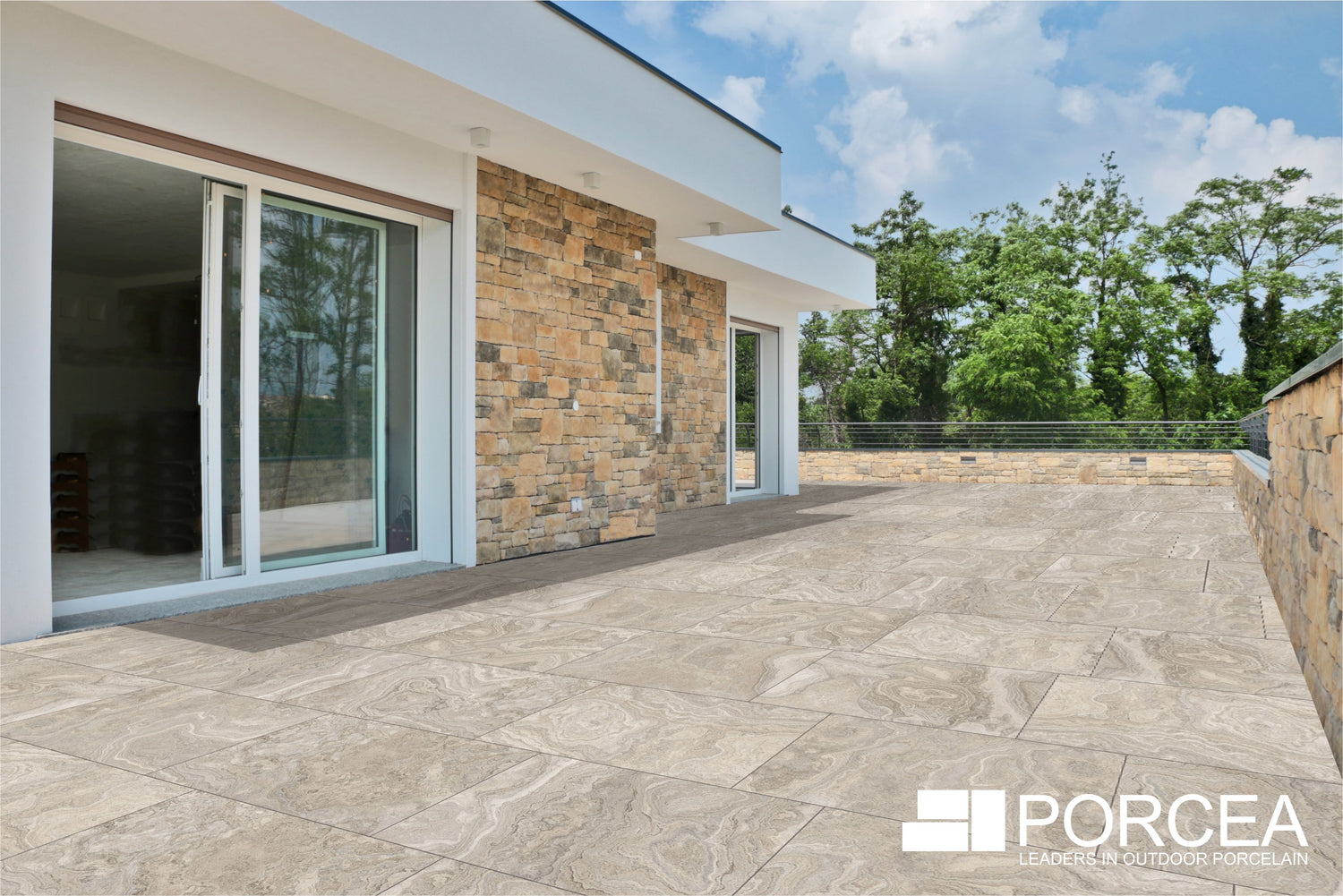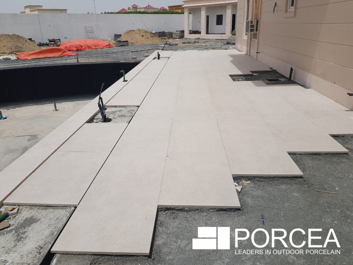 Porcea Coast is a light beige outdoor porcelain tile, available in 2 cm thickness. Outdoor porcelain is suitable for all applications including patios, walkways, pool decks, pedestrian commercial traffic, building facades, veneers, and even vehicular traffic with a concrete base.