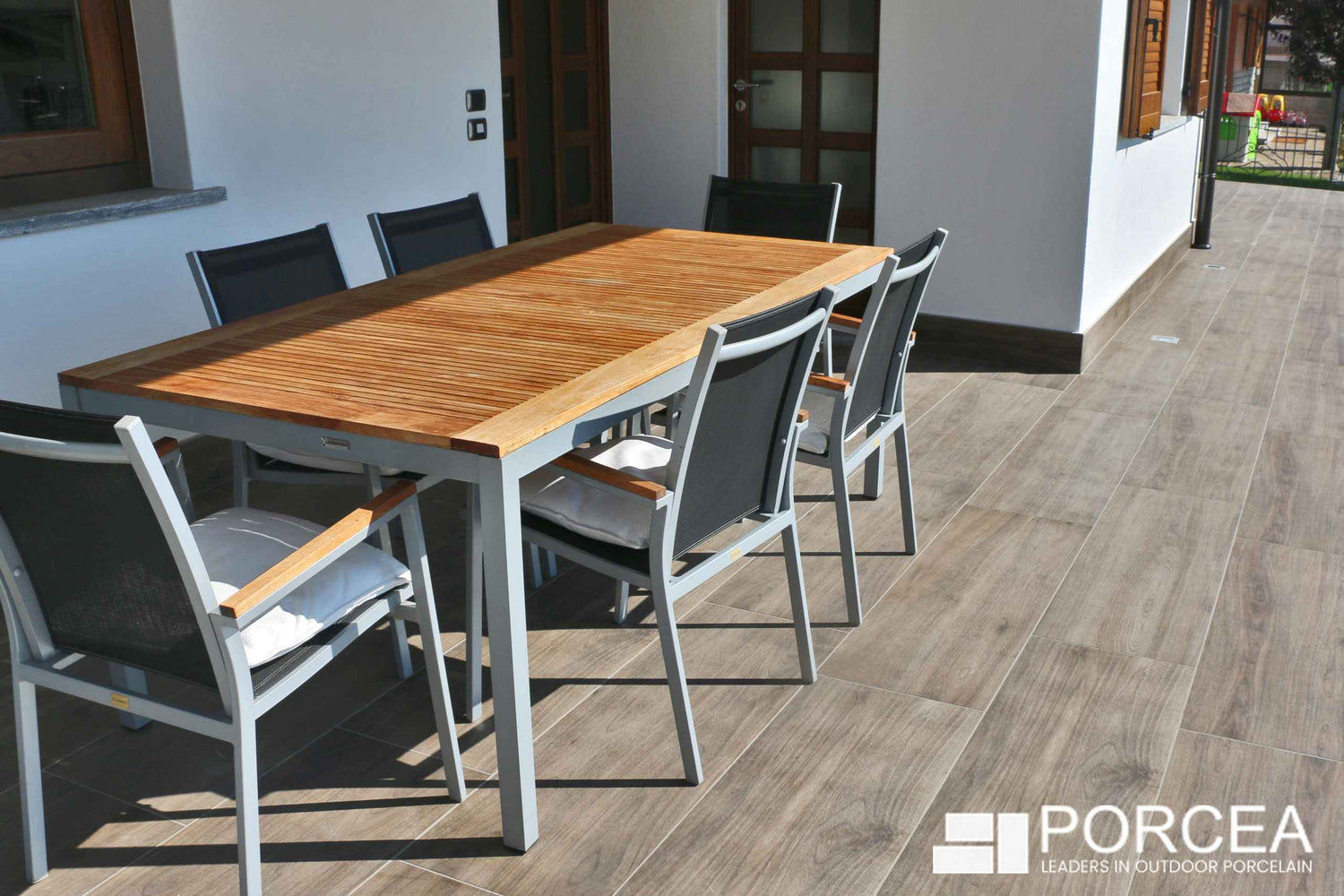 Porcea Birch Timber is a light brown wood outdoor porcelain, designed to replicate the knots and patterns found in real wood.